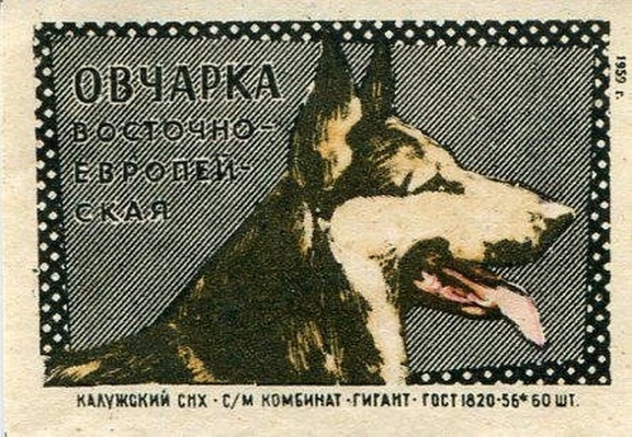 Спичечная этикетка с восточно-европейской овчаркой. 1959 год. #восточно_европейская_овчарка #овчарка