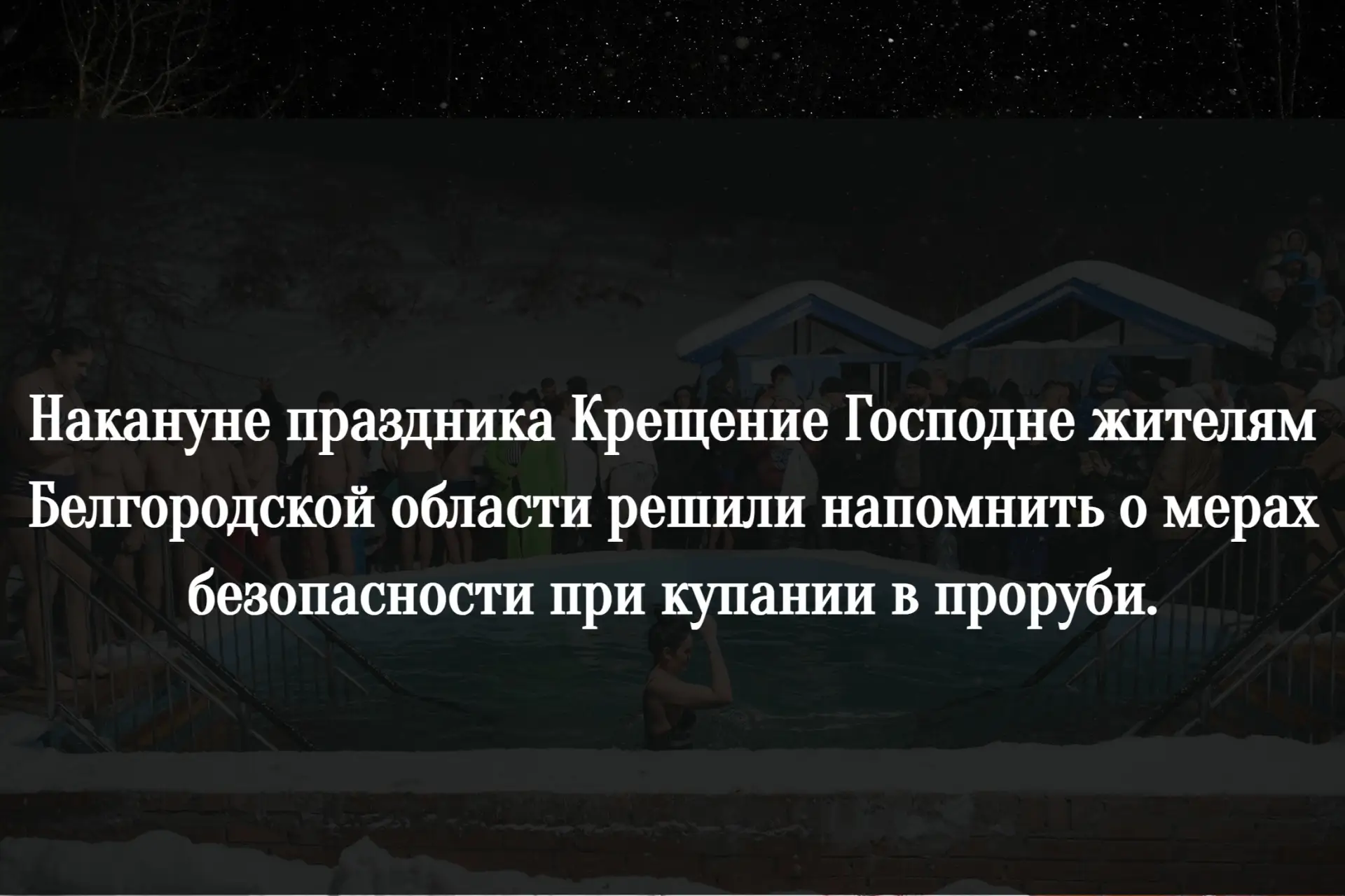 Накануне праздника Крещение Господне жителям Белгородской области решили напомнить о мерах безопасности при купании в проруби.