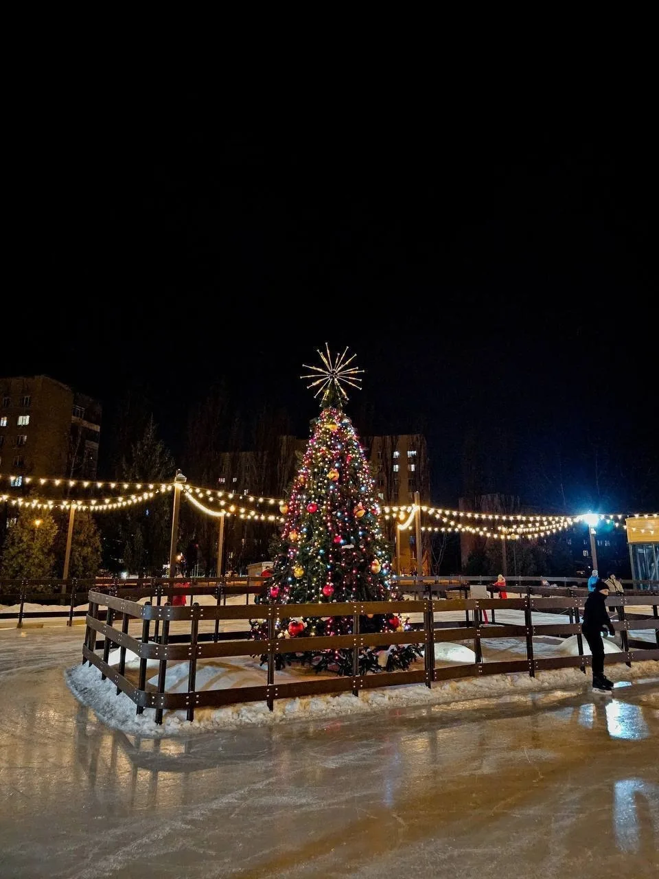 Отвлечёмся чуть-чуть от проблем. Посмотрите, как красиво бывает вечером, когда выпадает снег на открытом катке 😍