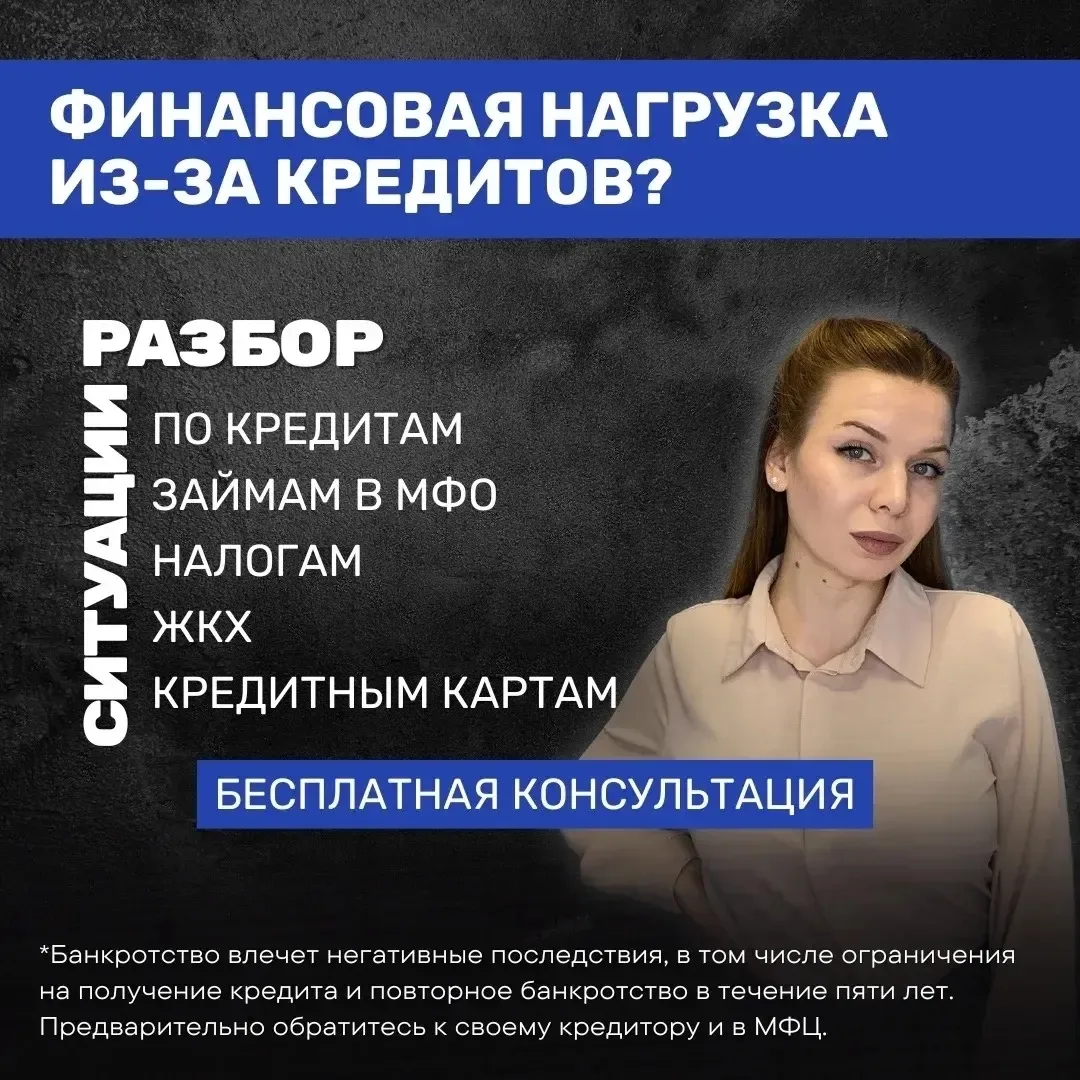 *Банкротство влечет негативные последствия, в том числе ограничения на получение кредита и повторное банкротство в течение пяти лет. Предварительно обратитесь к своему кредитору и в МФЦ
