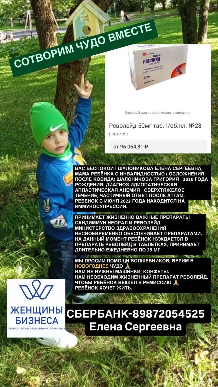 Друзья, предновогодняя пора — время чудес, и мы верим, что сможем сотворить одно для маленького Гриши из Октябрьского. Ему срочно нужна наша помощь в приобретении жизненно важного препарата. Осталась последняя упаковка в аптеке Уфы, и её стоимость — 96 000 рублей. Сумма не большая, но очень важно успеть её забрать!
