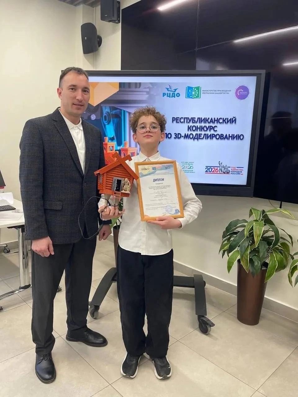 Ученик 6 класса гимназии № 3 Николай Филатов стал победителем в номинации «Сказки народов России». Под руководством наставника Фанира Кадырова гимназист смоделировал избушку на курьих ножках.
