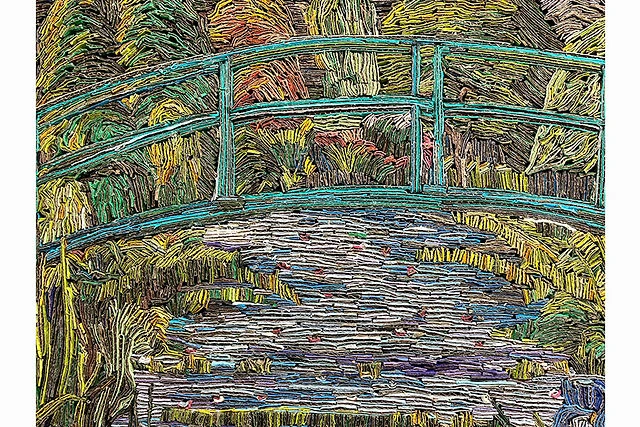 Например, эта картина называется "Столик для двоих", а собрана она из кусочков произведений Клода Моне, Рене Магритта, Ван Гога, Эдварда Хоппера и Вермеера 🤩