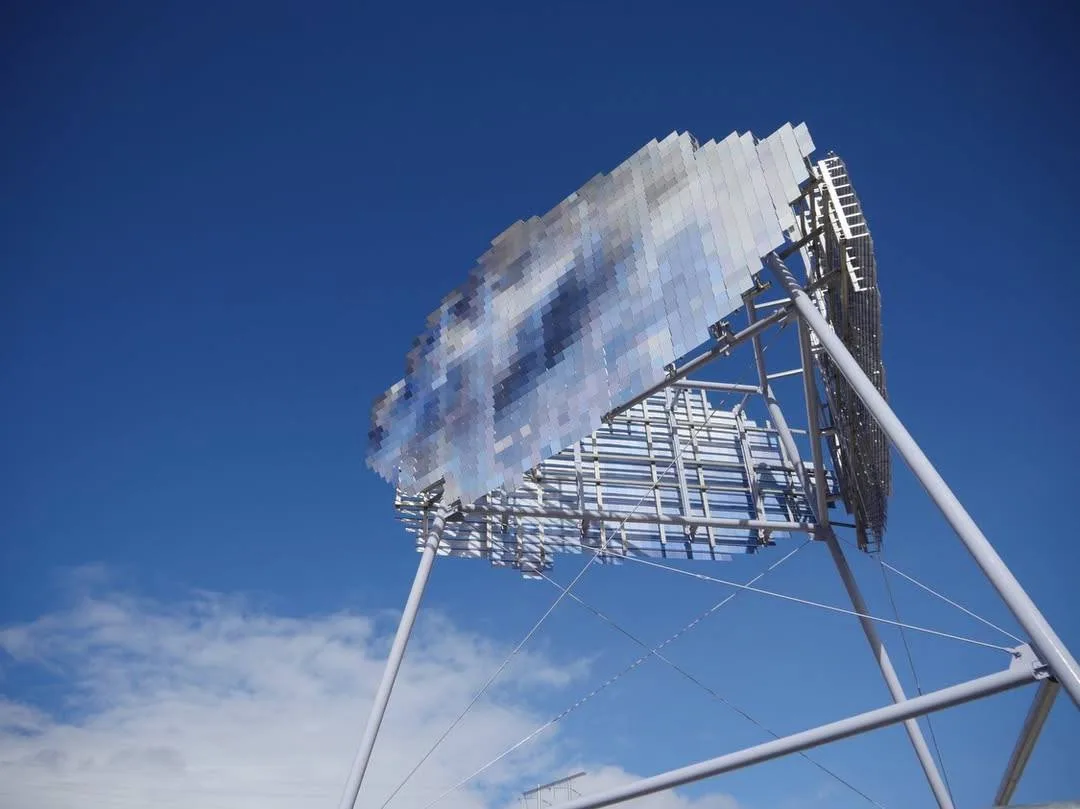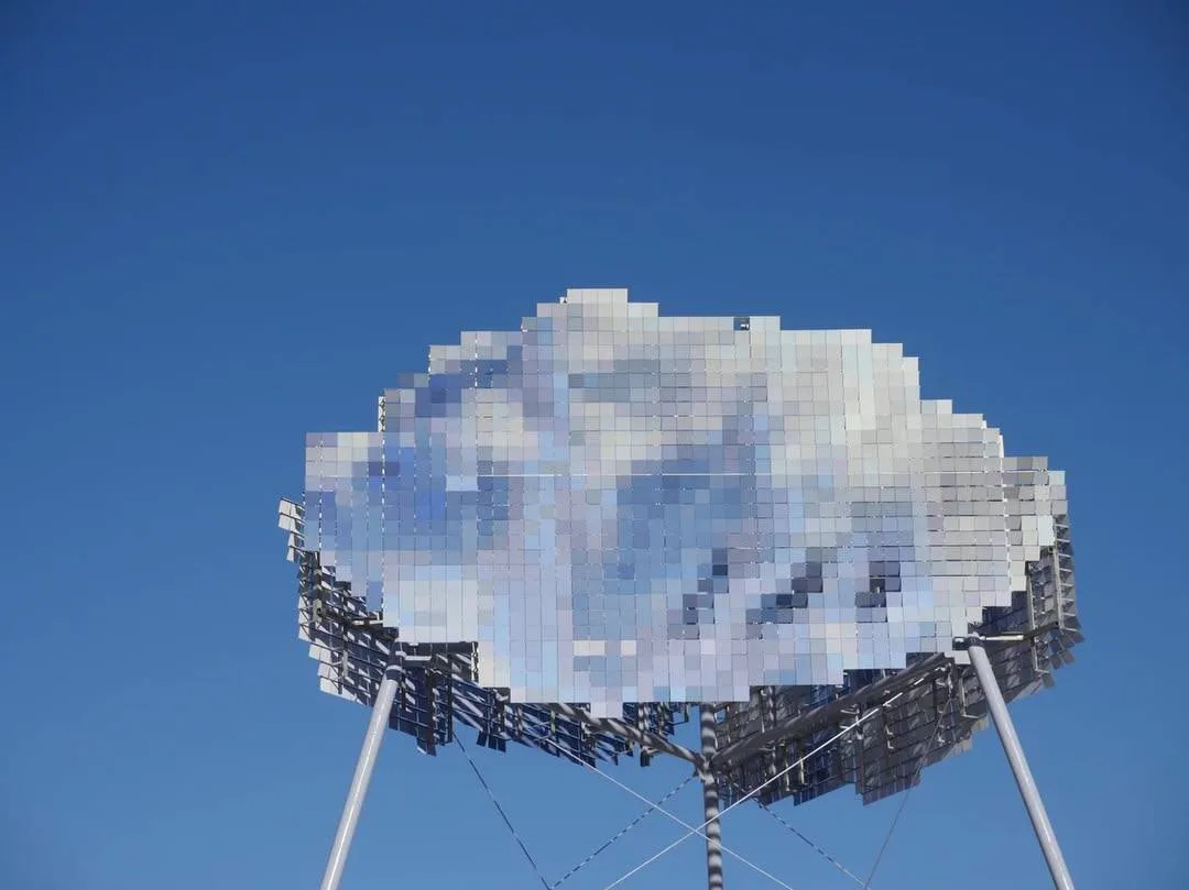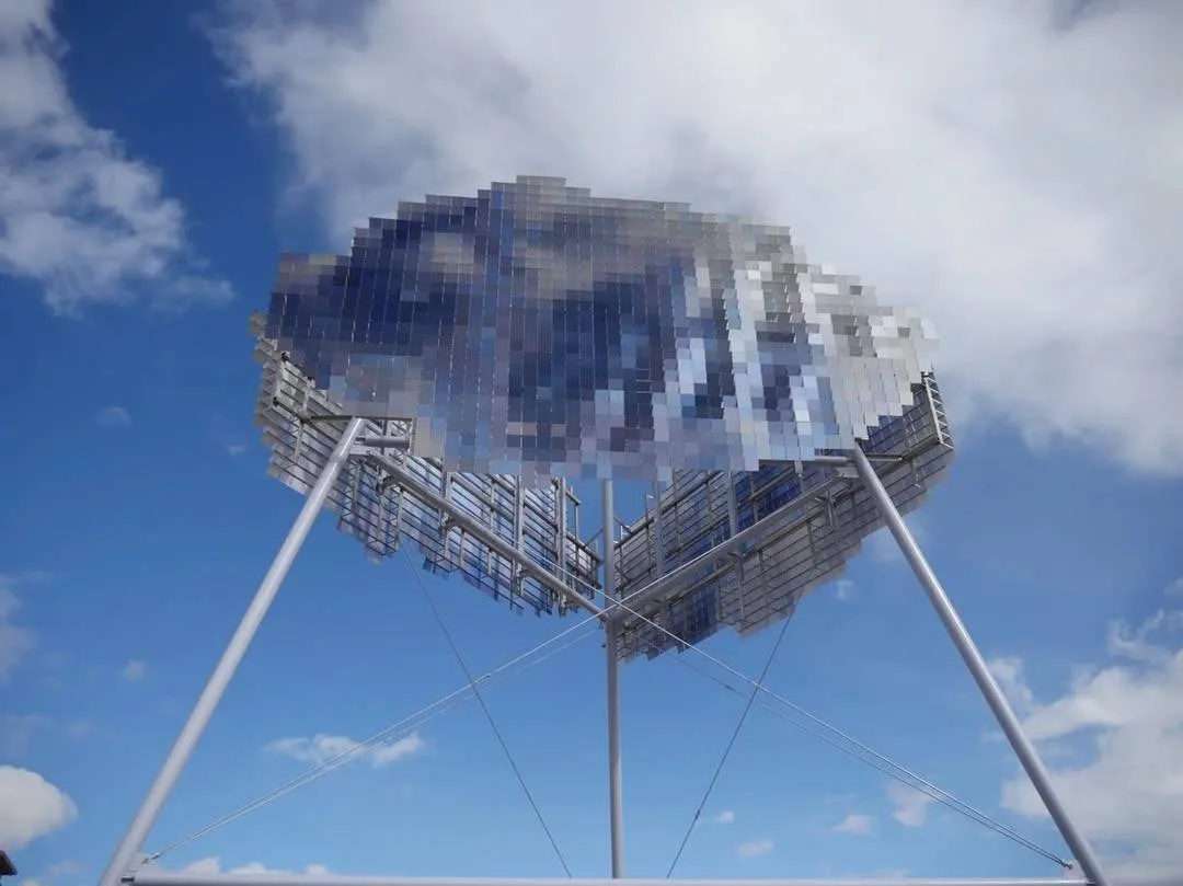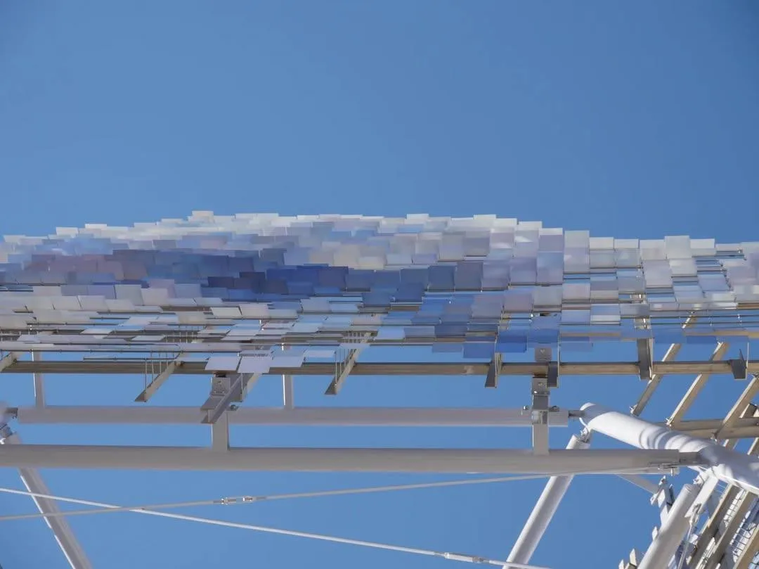 Арт-бъект собран из нескольких тысяч подвижных эмалированных лепестков из нержавеющей стали, закреплённых на шарнирах.