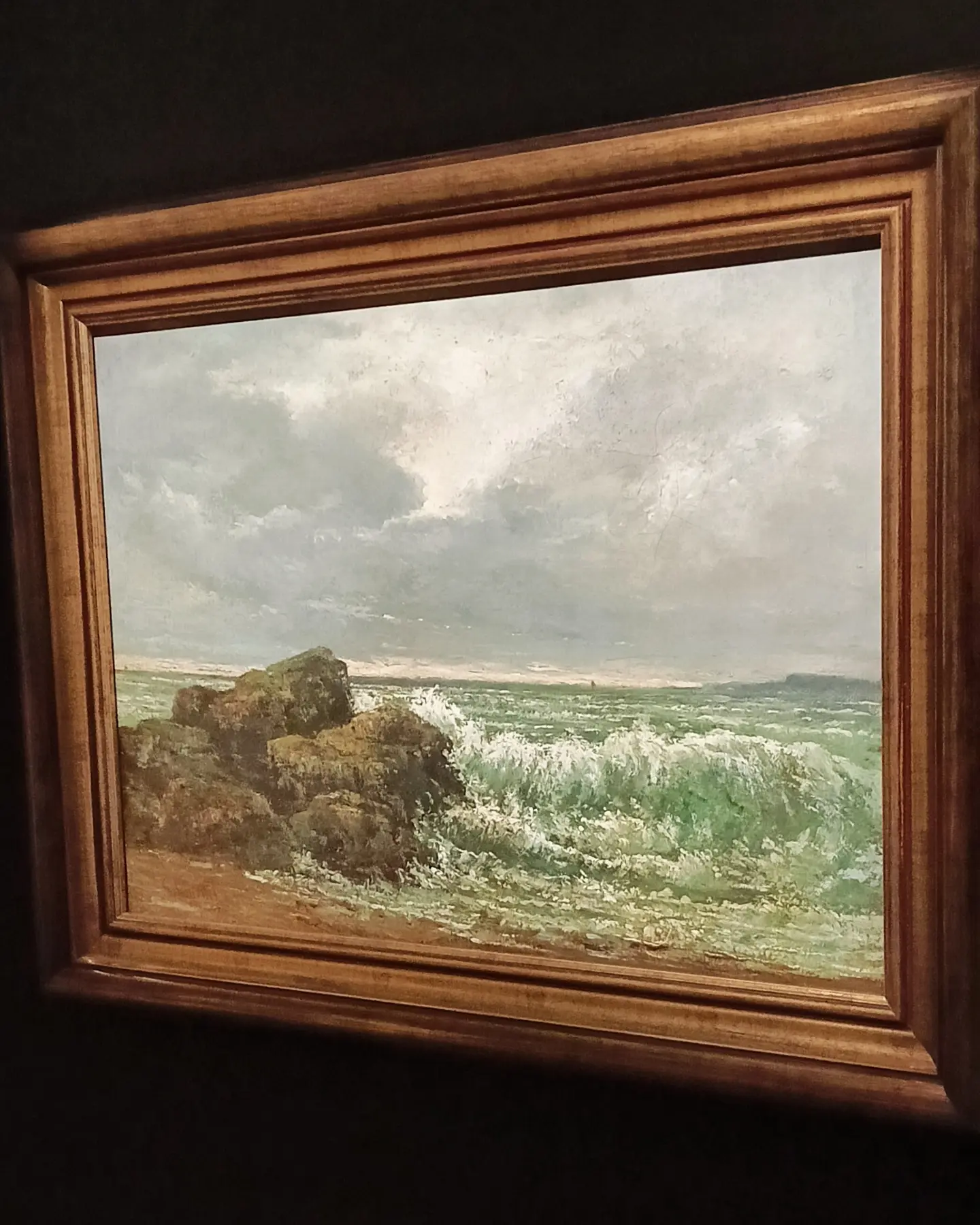 ✨ В таком свете знаменитая «Волна» Гюстава Курбе (1869 год), например, почти осязаема. Смотришь на неё и кажется, что морская пена вот-вот выплеснется за пределы рамы.