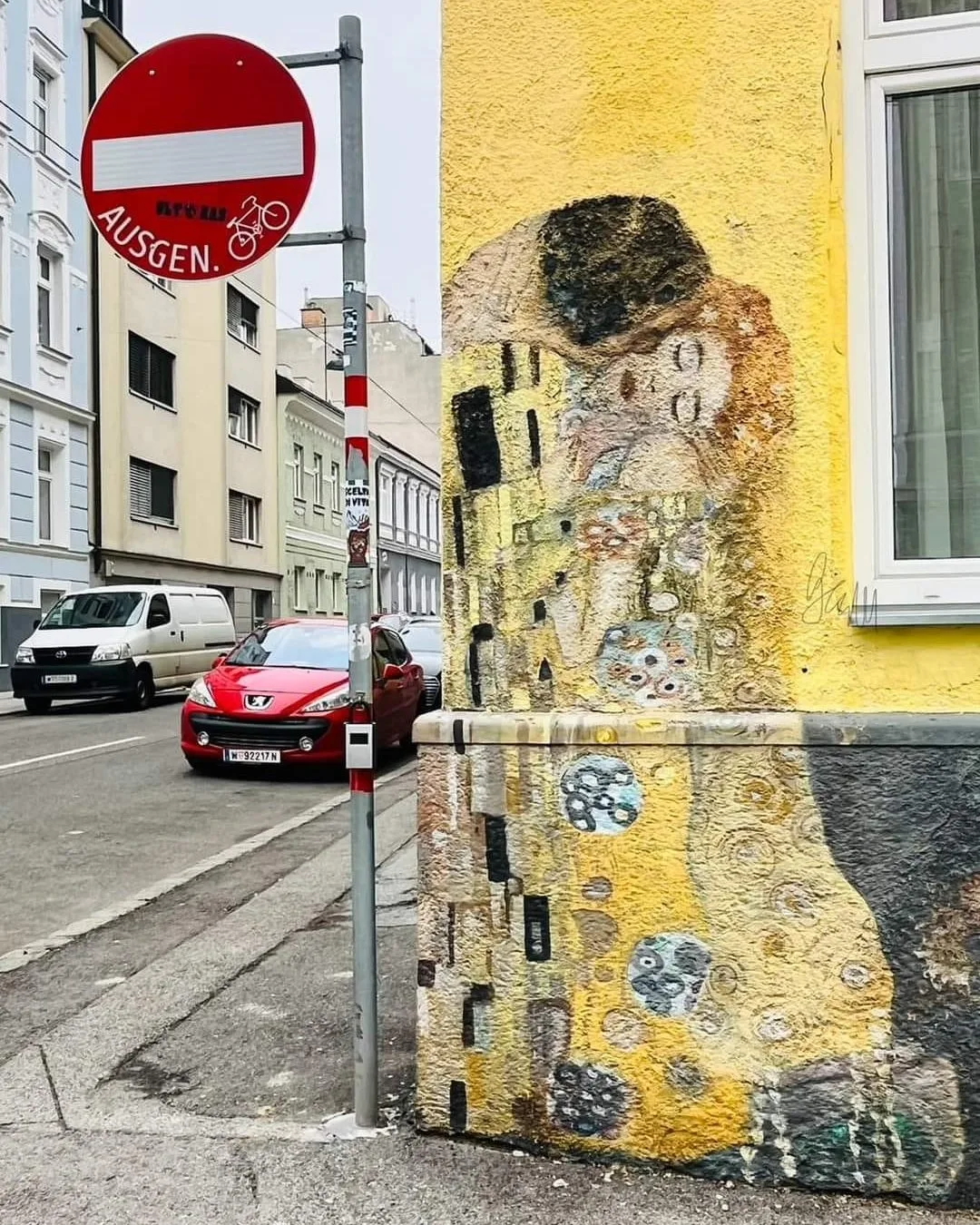 🇦🇹 Великолепный стрит-арт в Вене, как дань памяти культовому шедевру Густава Климта.