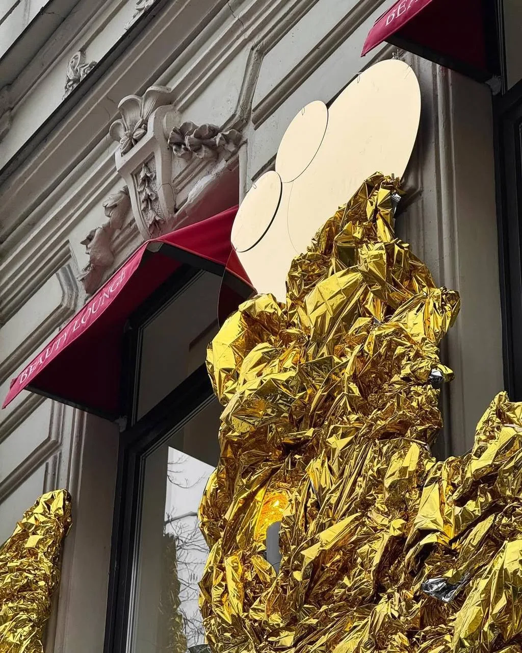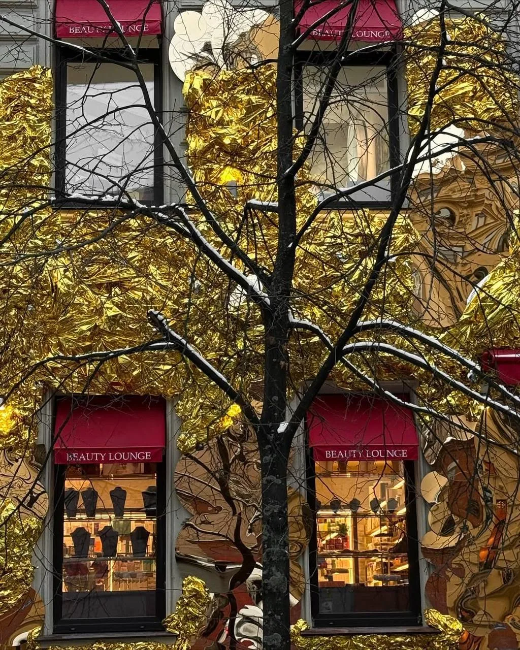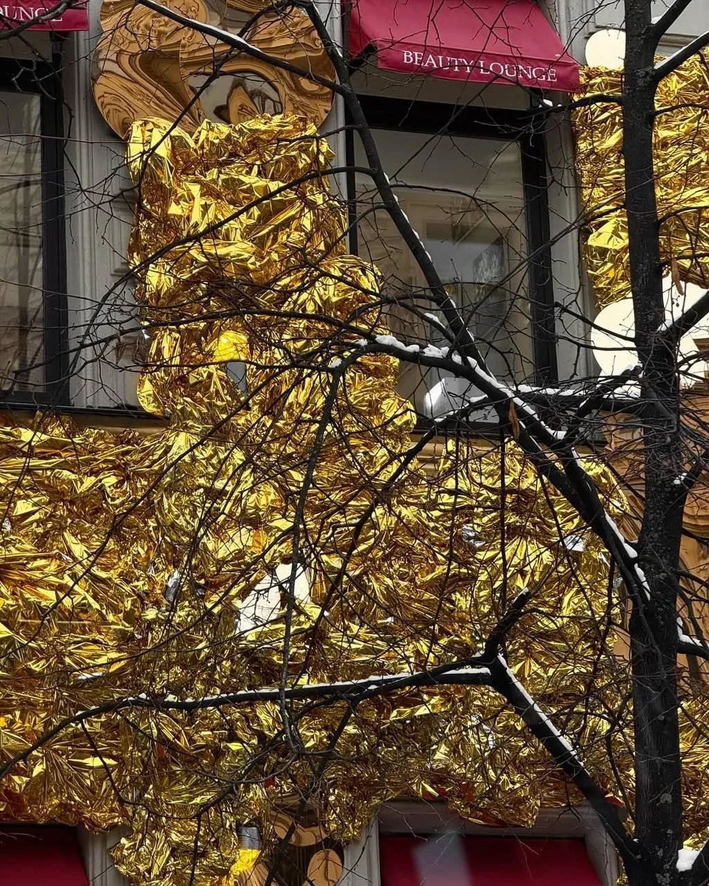 Дом превратился в подарок в праздничной сияющей обертке. Очень необычно.