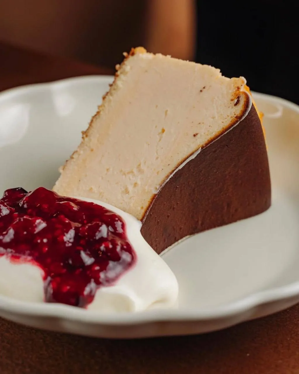 Также среди двух новых десертов в бистро — баскский чизкейк с ягодным компоте (690 руб.) и мусс из вареной сгущенки с пломбиром и малиной (720).