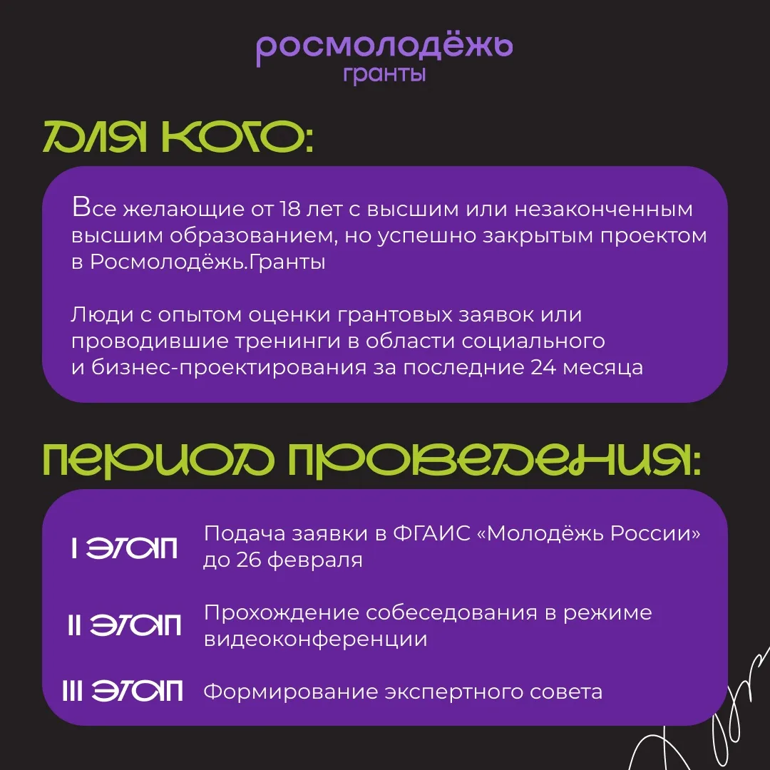 Если уже успели подать заявку в наш экспертный совет, не упускайте возможность подать заявку в экспертный совет Росмолодёжи 😉