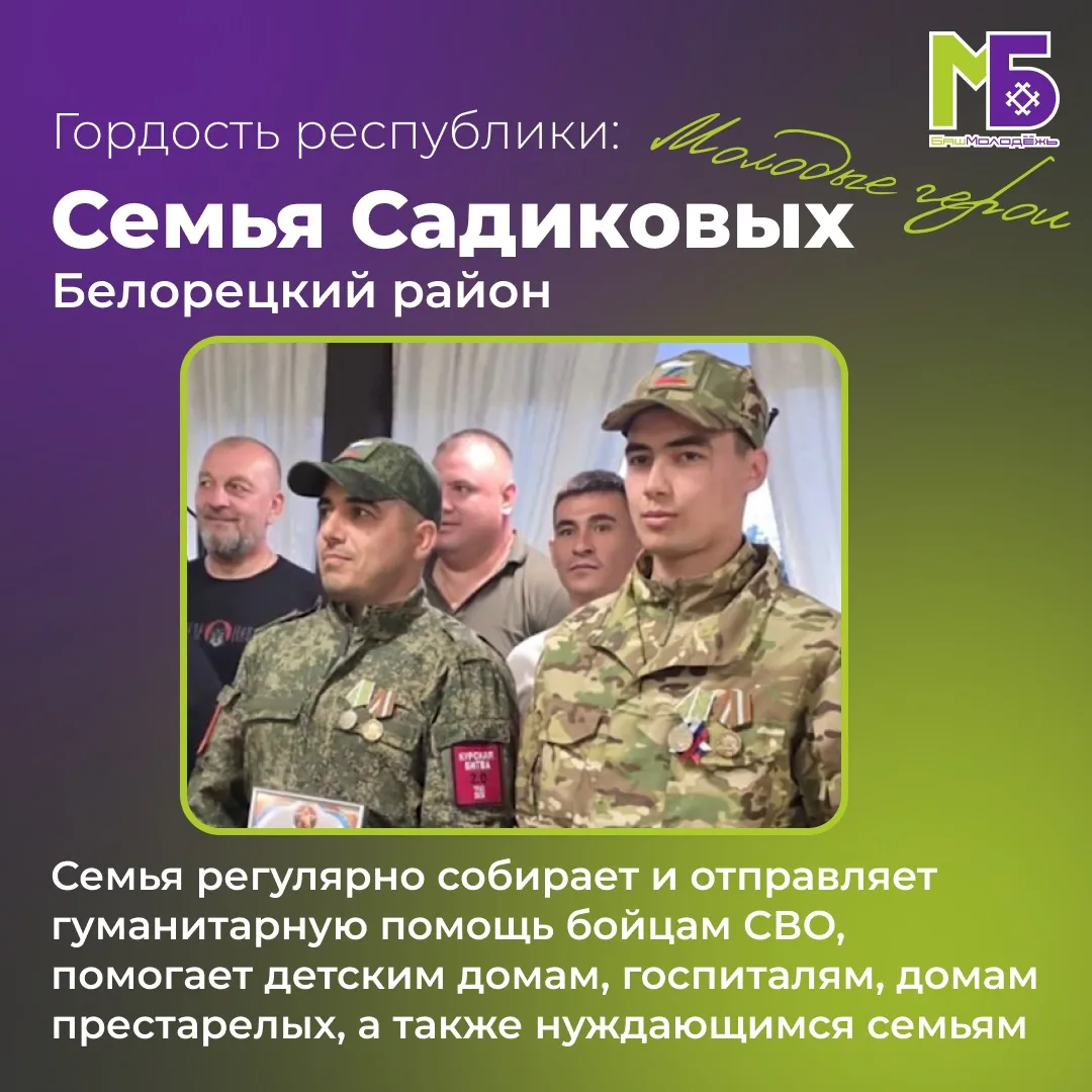 Отец и сын Садиковы из Белорецкого района уже много лет занимаются волонтёрской деятельностью – отправляют гуманитарные наборы в зону СВО, активно помогают детским домам, госпиталям, домам престарелых, а также нуждающимся семьям. Всего в зону СВО молодыми предпринимателями было направлено уже более тысячи наборов (термобельё, бельё, носки, сапоги, полотенца, средства гигиены, одежда).