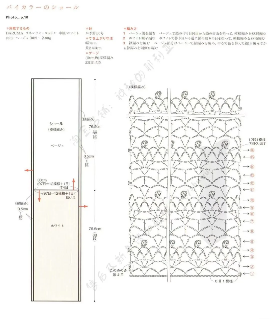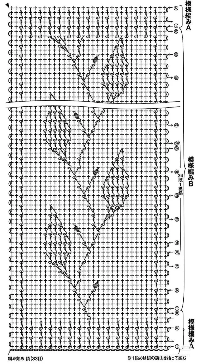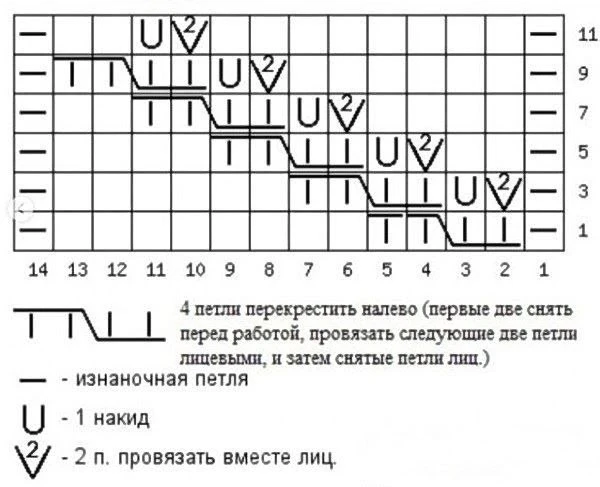 2й и 6й ряды: *1 лиц, накид.* 4й и 8й ряды: лицевые петли.