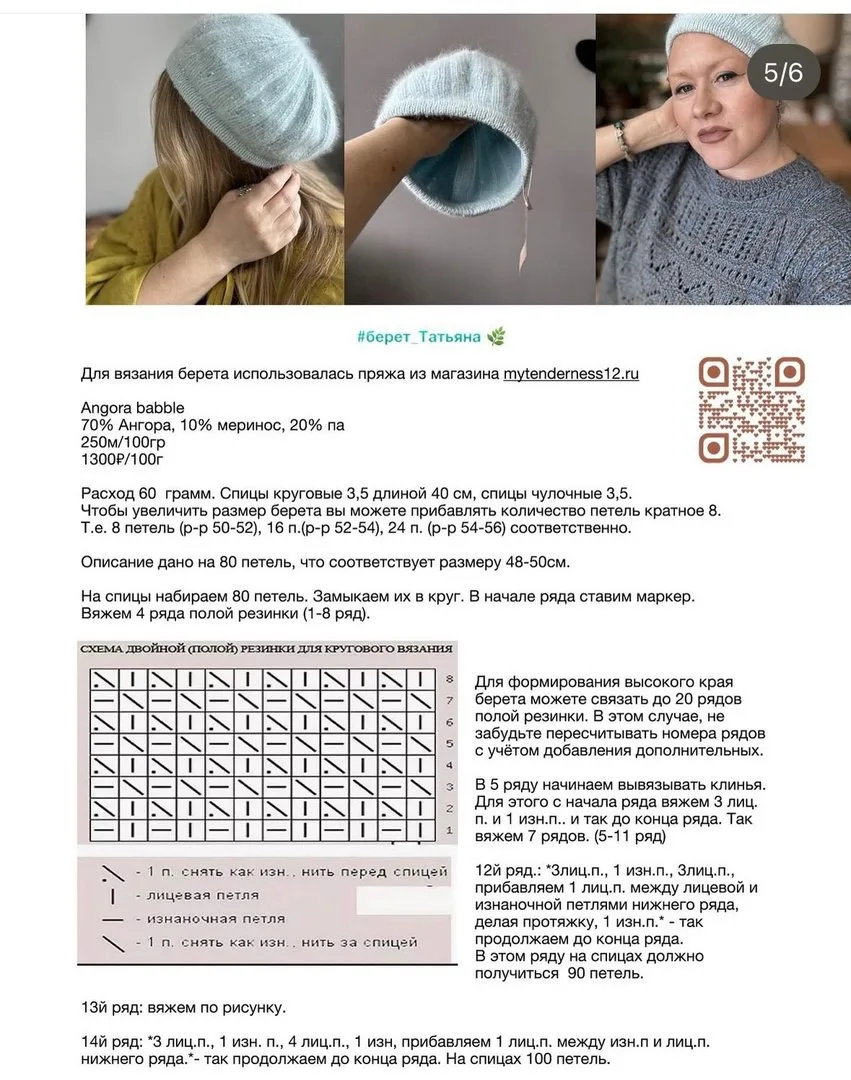 Берет связан спицами 3,5мм, расход составил 60 грамм.🧶🧶