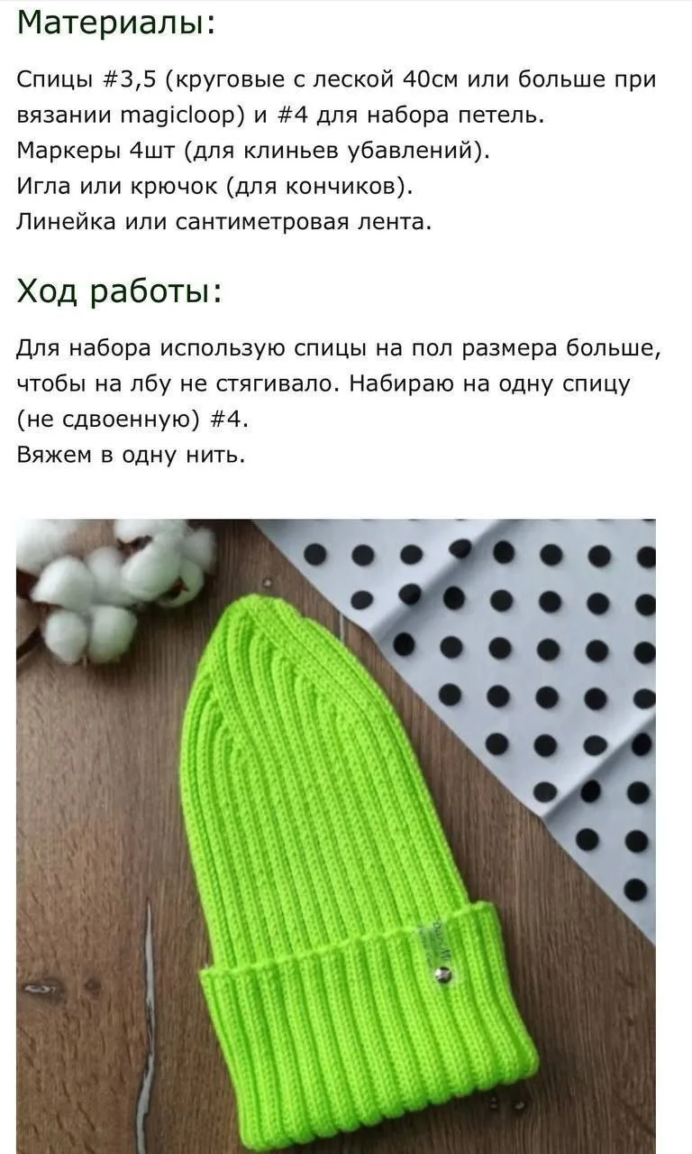 Вяжем по кругу лицевыми. Провязываем от местат отворота 13/14 см, в зависимости от размера и делаем убавки.