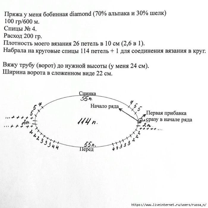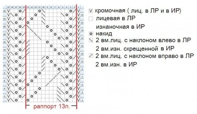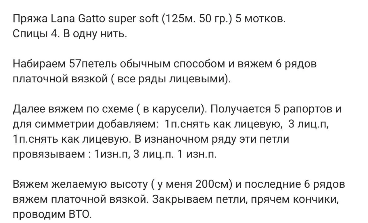 У меня спицы номер 4. Расчет: 13п х Кол-во раппортов + 4п + 2 кромочные.Сколько в длину вязать?