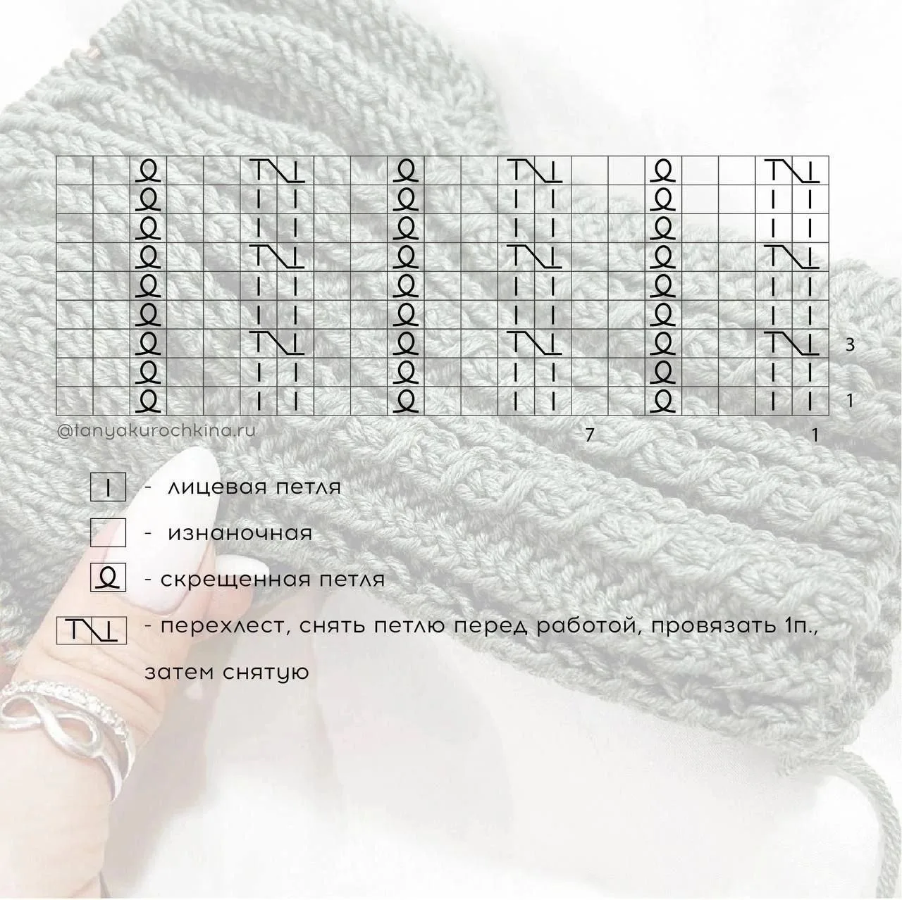 Хочу рассказать только про узор, как на шапке. Правда я не знаю, как он точно называется, прошу не судить 🙏. Но я назвала его "двойная коса из танцующих петель".