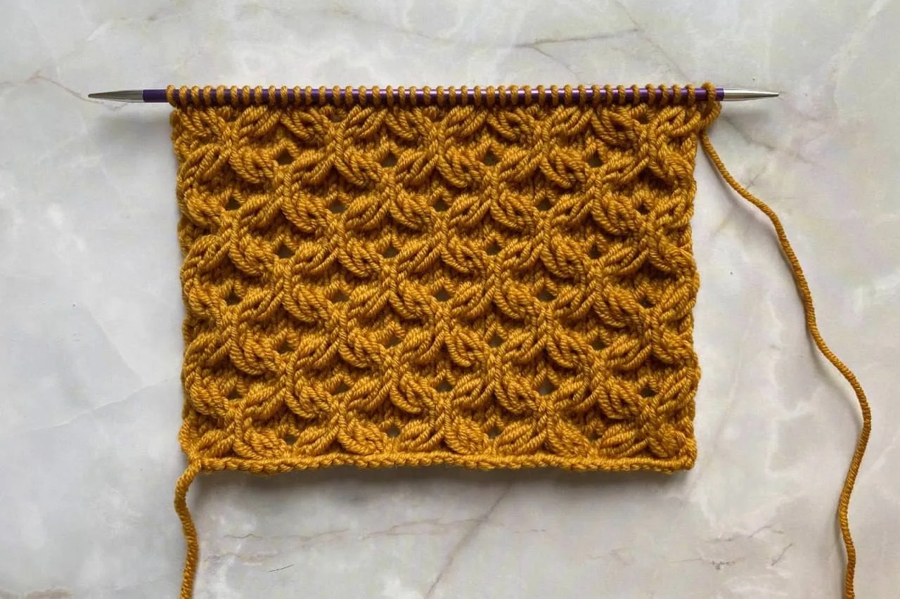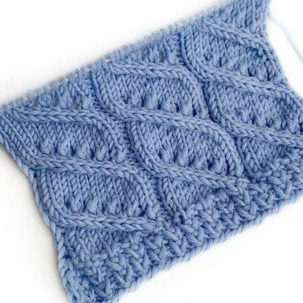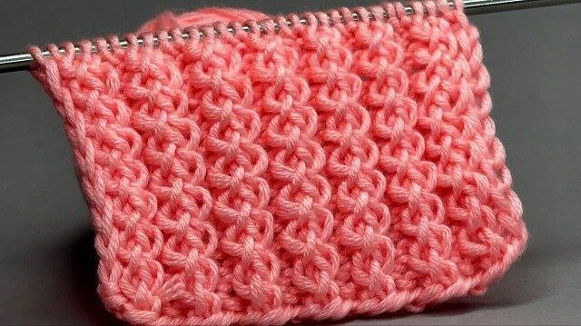 Для создания такого полотна вяжем два ряда обычных, один ряд с узором