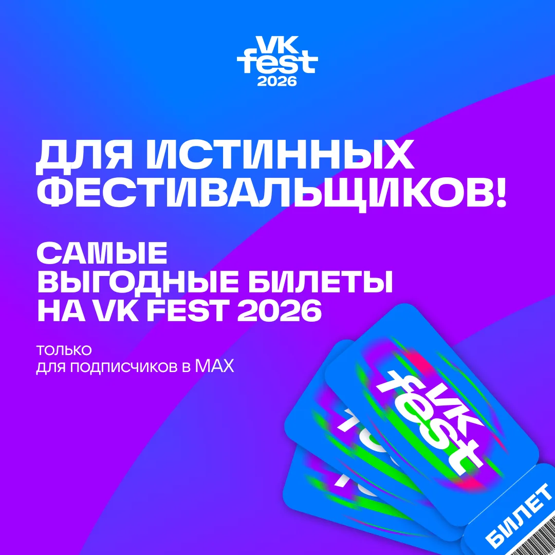 Билеты по самой низкой цене: https://max.ru/vk_fest_tickets_bot