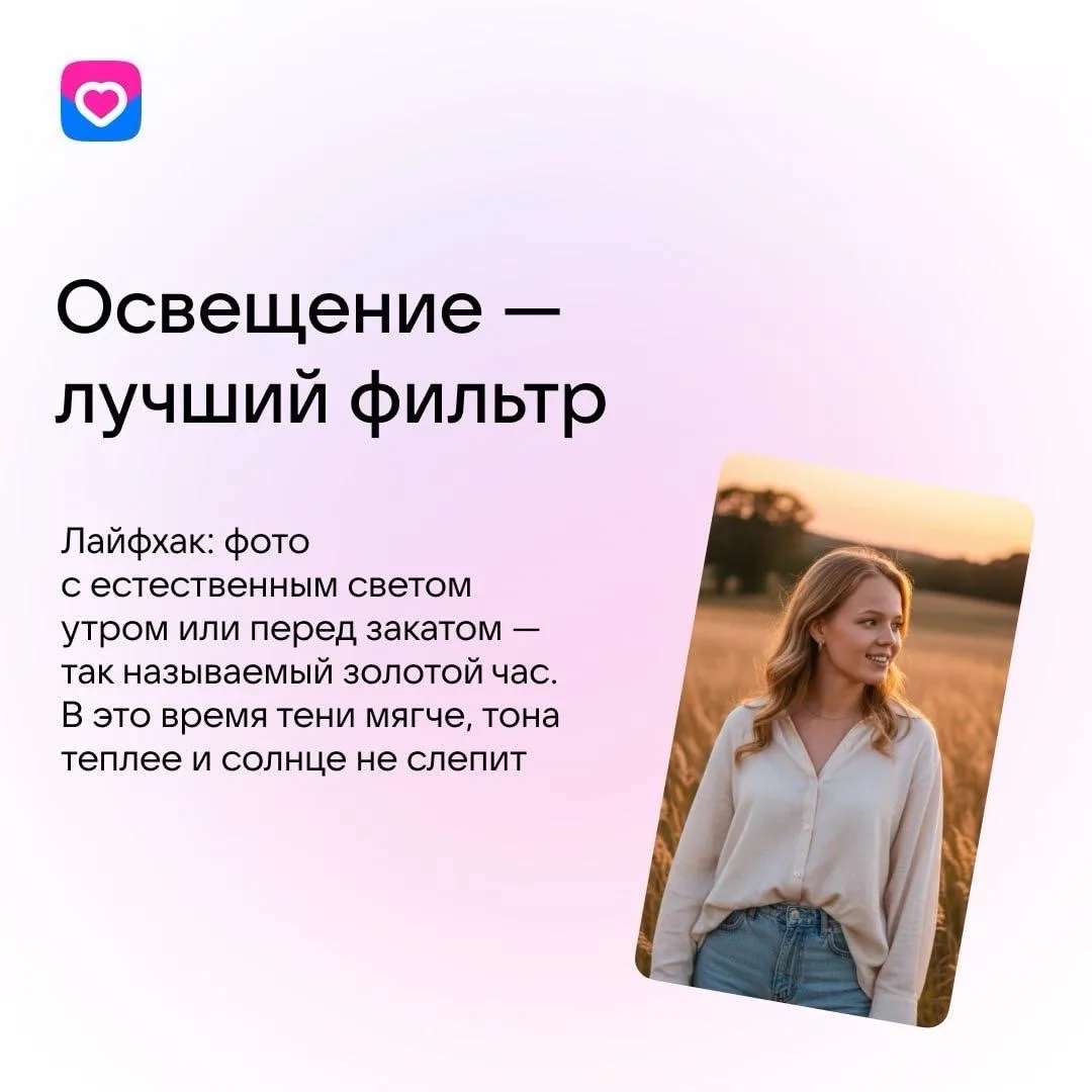 Вы можете быть невероятно интересным человеком — но если фото не передаёт вашу энергию, шанс на взаимный лайк снижается.