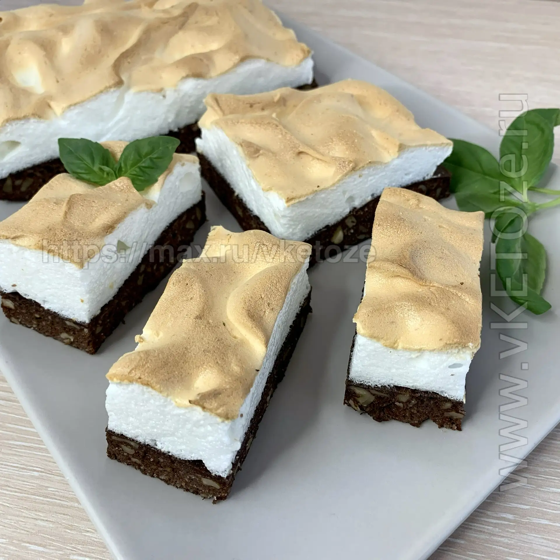 ✔️Запечь брауни с меренгой до готовности при 140С (около 15мин).