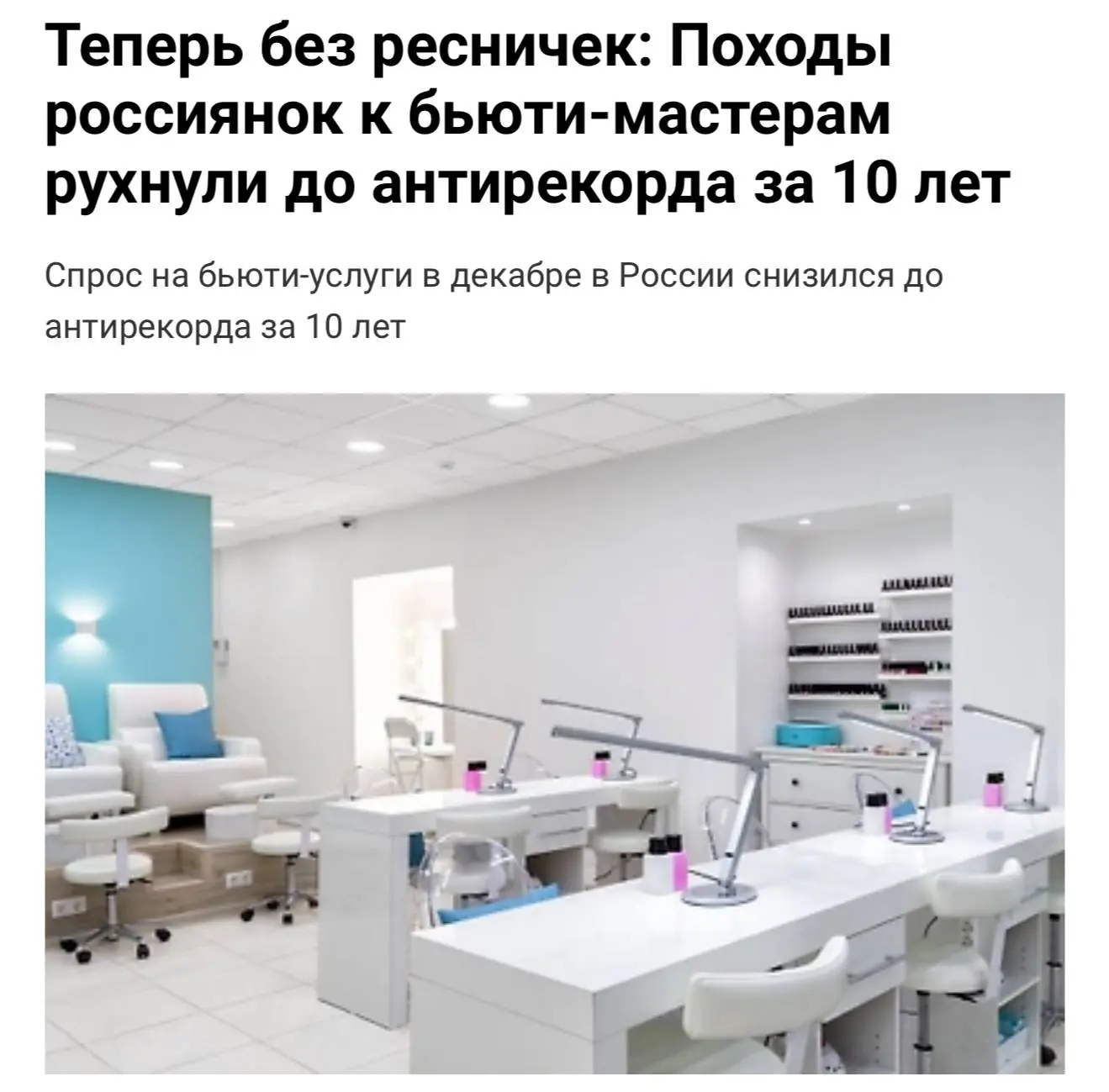 Россиянки отказываются от маникюра, ресниц и бровей. Спрос на услуги красоты упал на 20–40%, в бьюти-индустрии намечается серьёзный кризис. Из-за падения доходов и экономической тревоги женщины думают не о красоте, а о базовых потребностях, заявили в Ассоциации предпринимателей индустрии красоты. Там отметили, что декабрь, обычно самый прибыльный месяц, в этом году стал худшим за последние 10 лет — салоны теряют до 30% доходов. Экономика - Подписаться