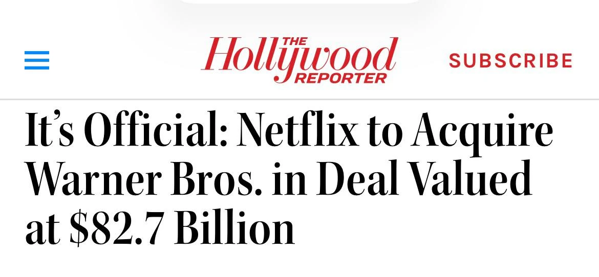 Netflix покупает Warner Bros. Discovery за $82,7 млрд и получает эксклюзивный контроль над ключевыми франшизами — «Гарри Поттер», «Друзья», «Игра престолов», «Клан Сопрано» — ради усиления библиотеки и прав на премиальный контент. Экономика - Подписаться