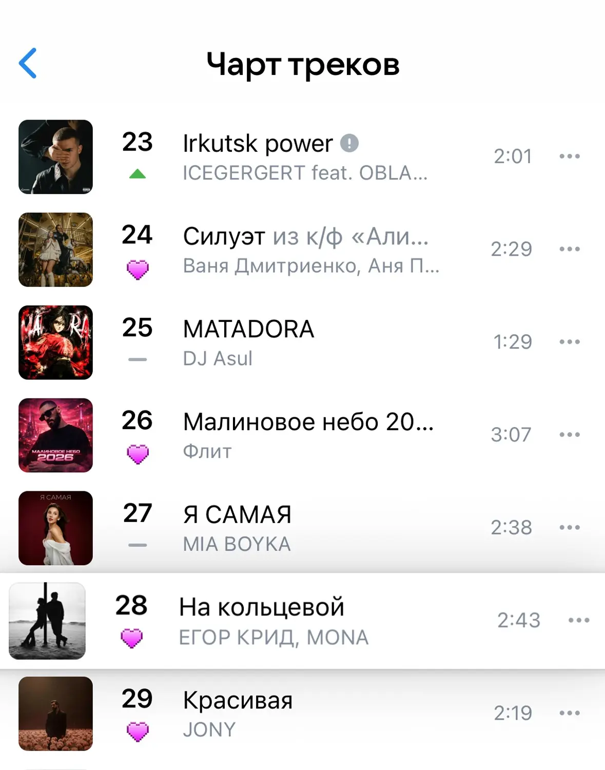 И не только их трек! Заходите в «Чарт треков» и ищите 🩷 возле названий — песни с вайбом любви ждут, пока вы их включите!