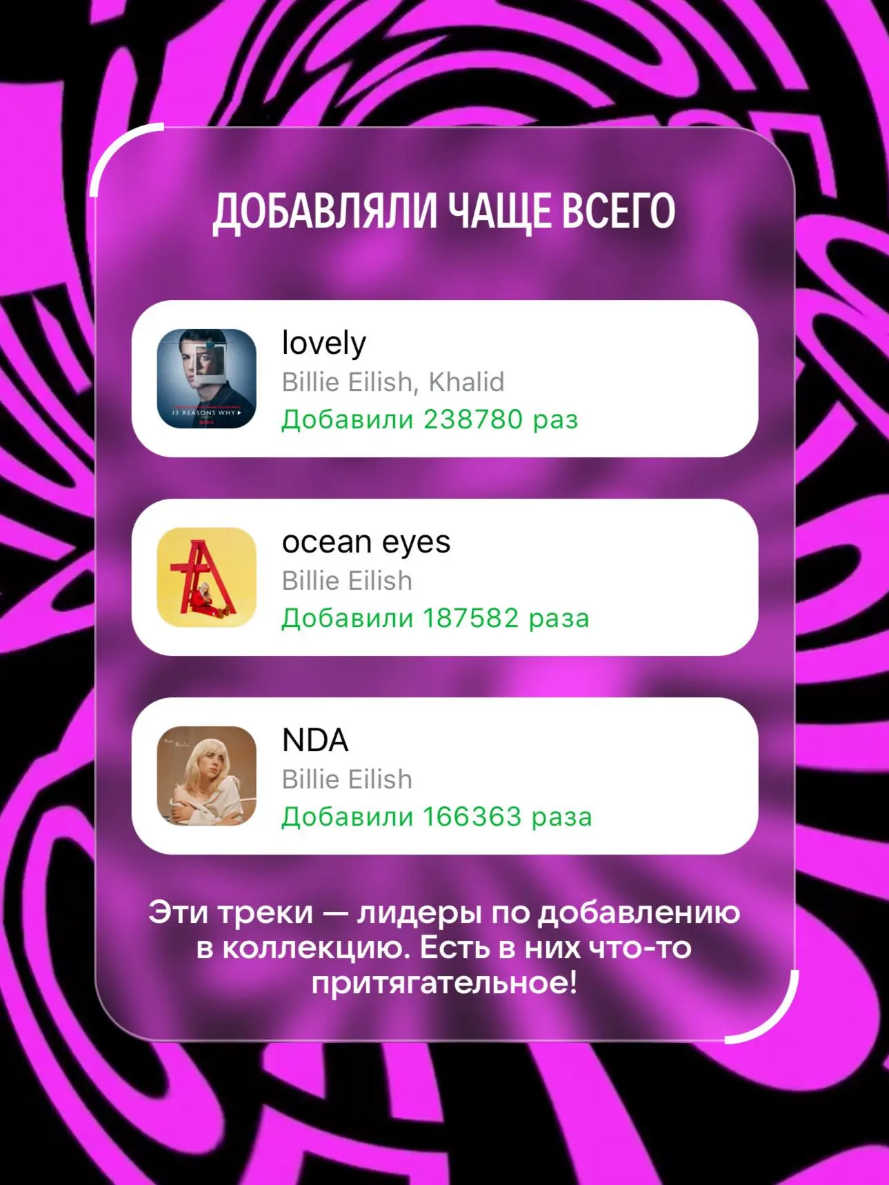 А что в её итогах года — каждый теперь может посмотреть в карточке музыканта: vk.com/artist/billieeilish 💙
