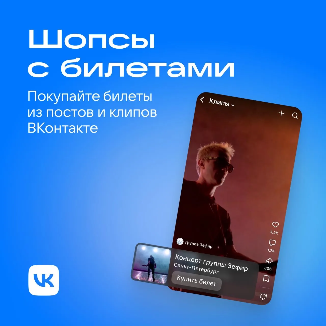 Теперь ВКонтакте можно покупать билеты из шопсов — постов и клипов с карточками мероприятий.