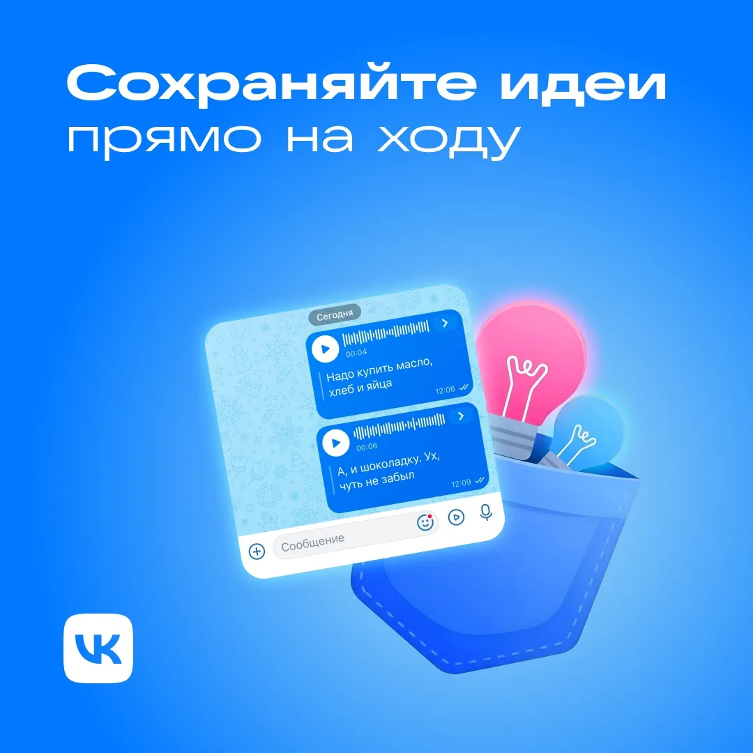 ⦁ Запишите мысль в аудиосообщении