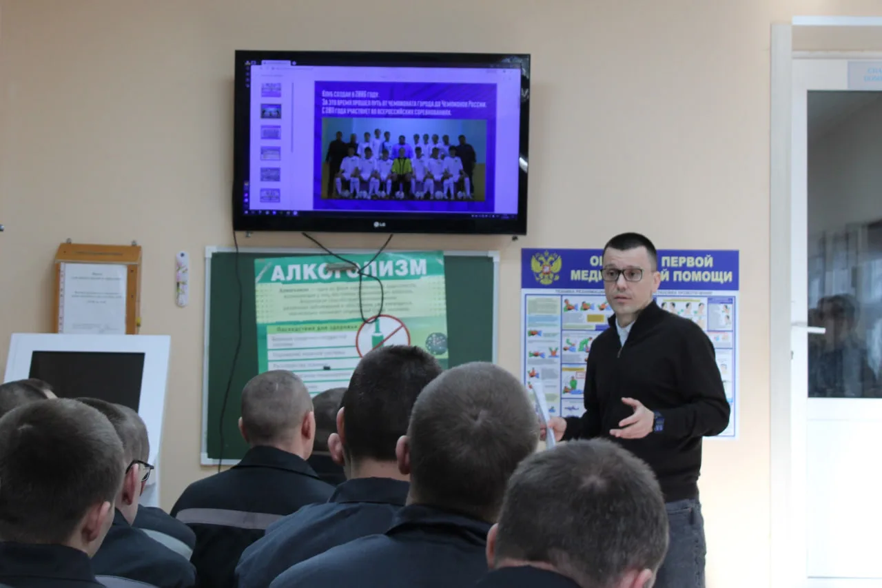 Гости рассказали об истории клуба, показали документальный ролик о победе в Суперкубке России 2025 года. В ходе беседы осужденные интересовались планами по строительству нового стадиона, материальным обеспечением команды и соотношением местных игроков и легионеров из Бразилии и Сербии.