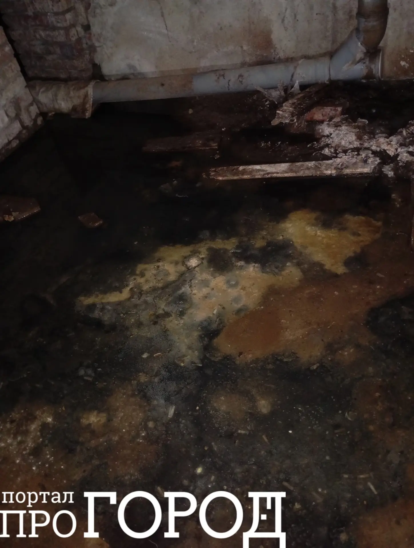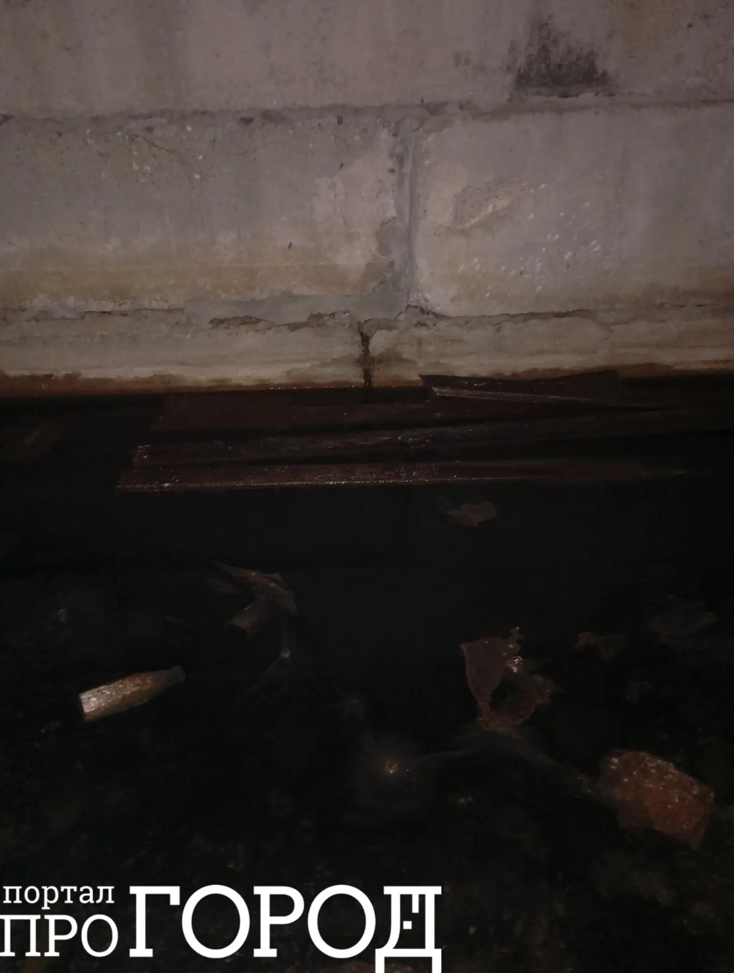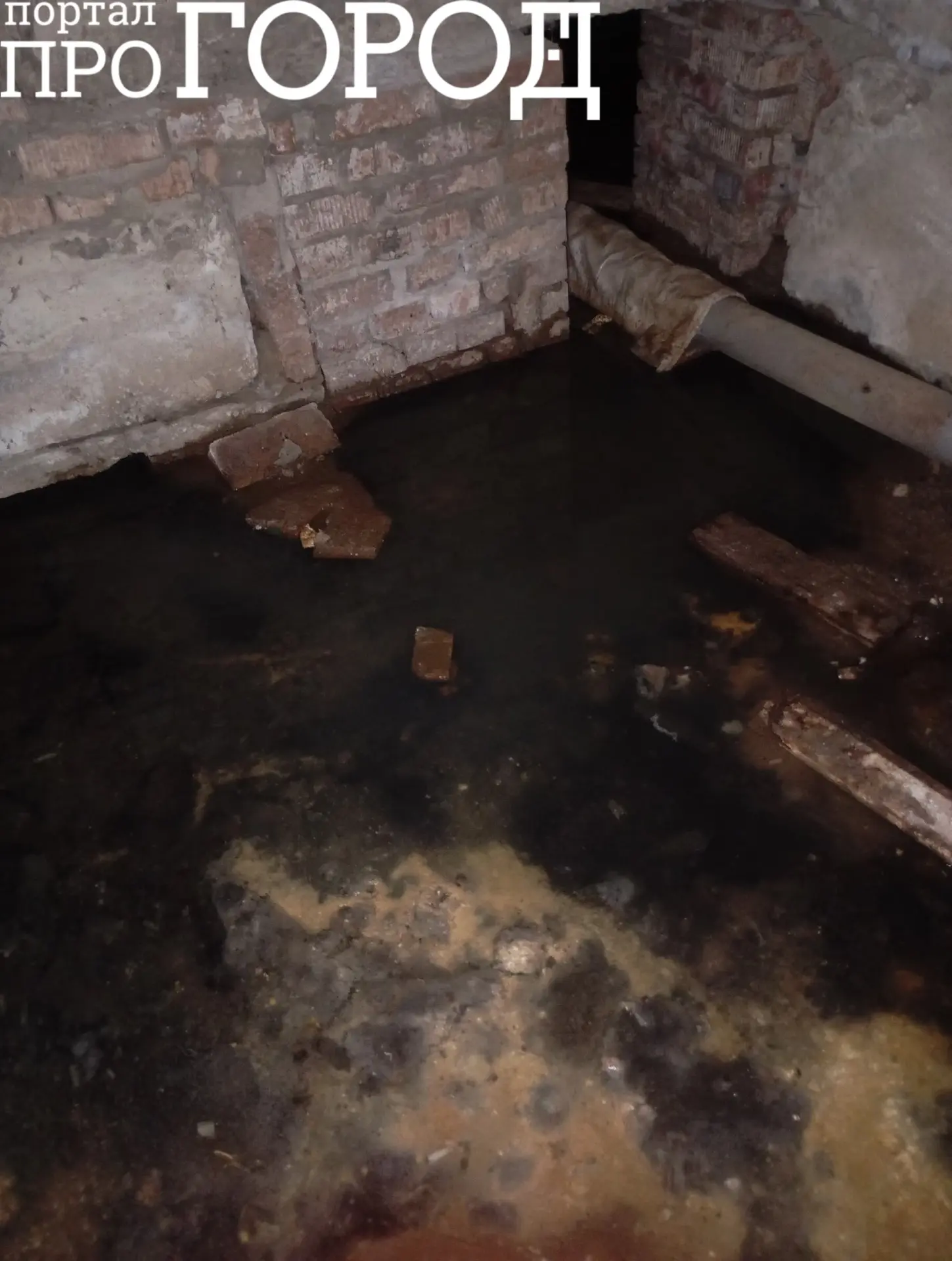 «От двери до лестницы воды по щиколотку. И так каждый год! При входе в подъезд доска пола поломана, а внизу подвал залит полностью водой. В доме живут маленькие дети!
