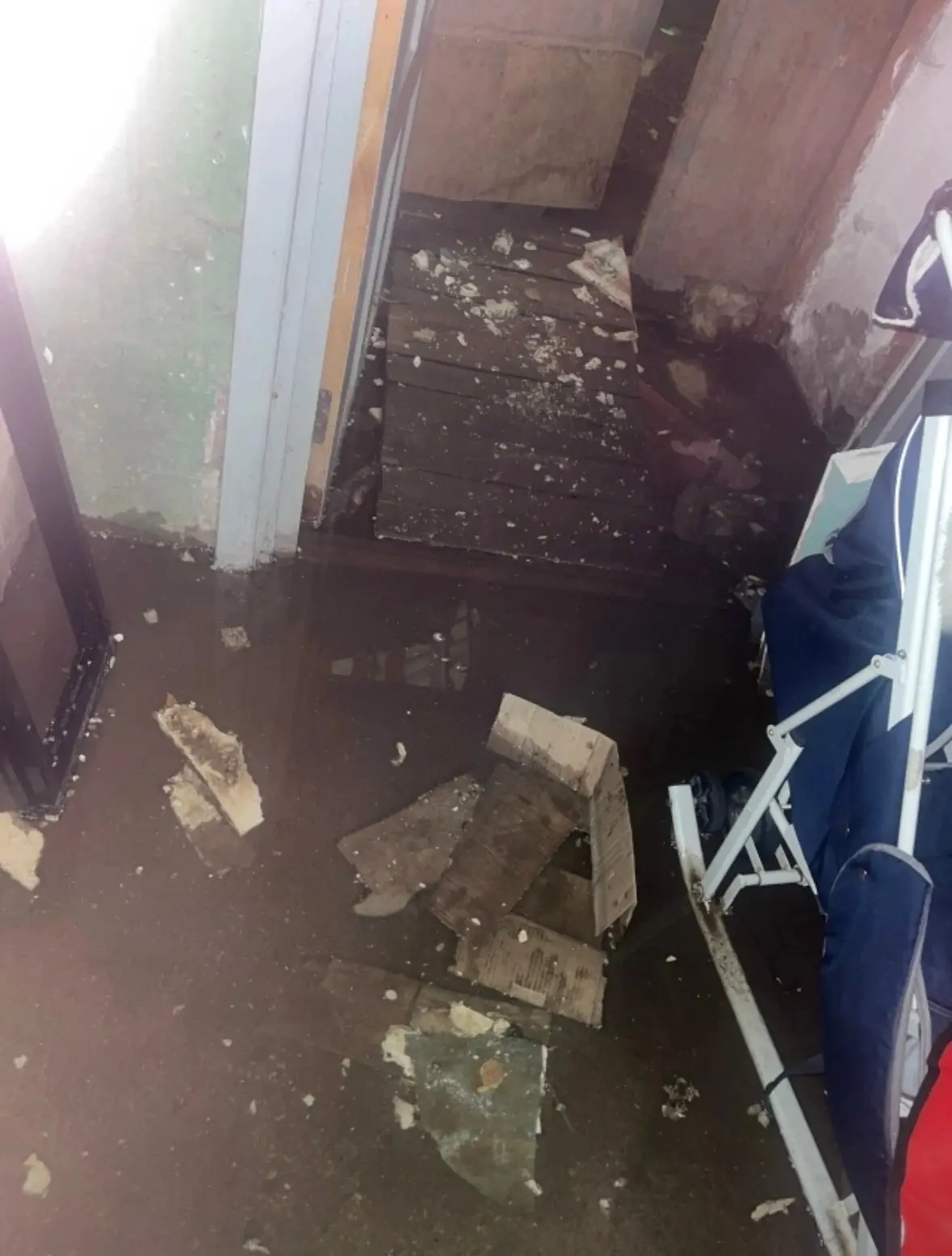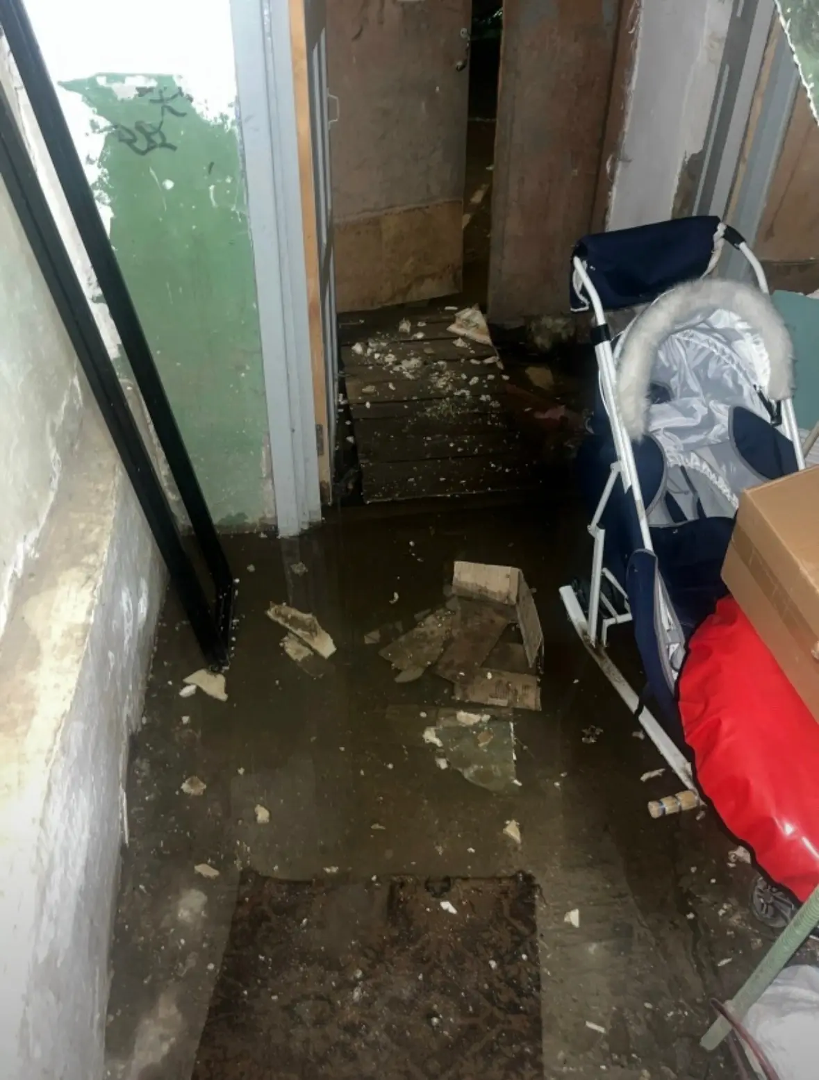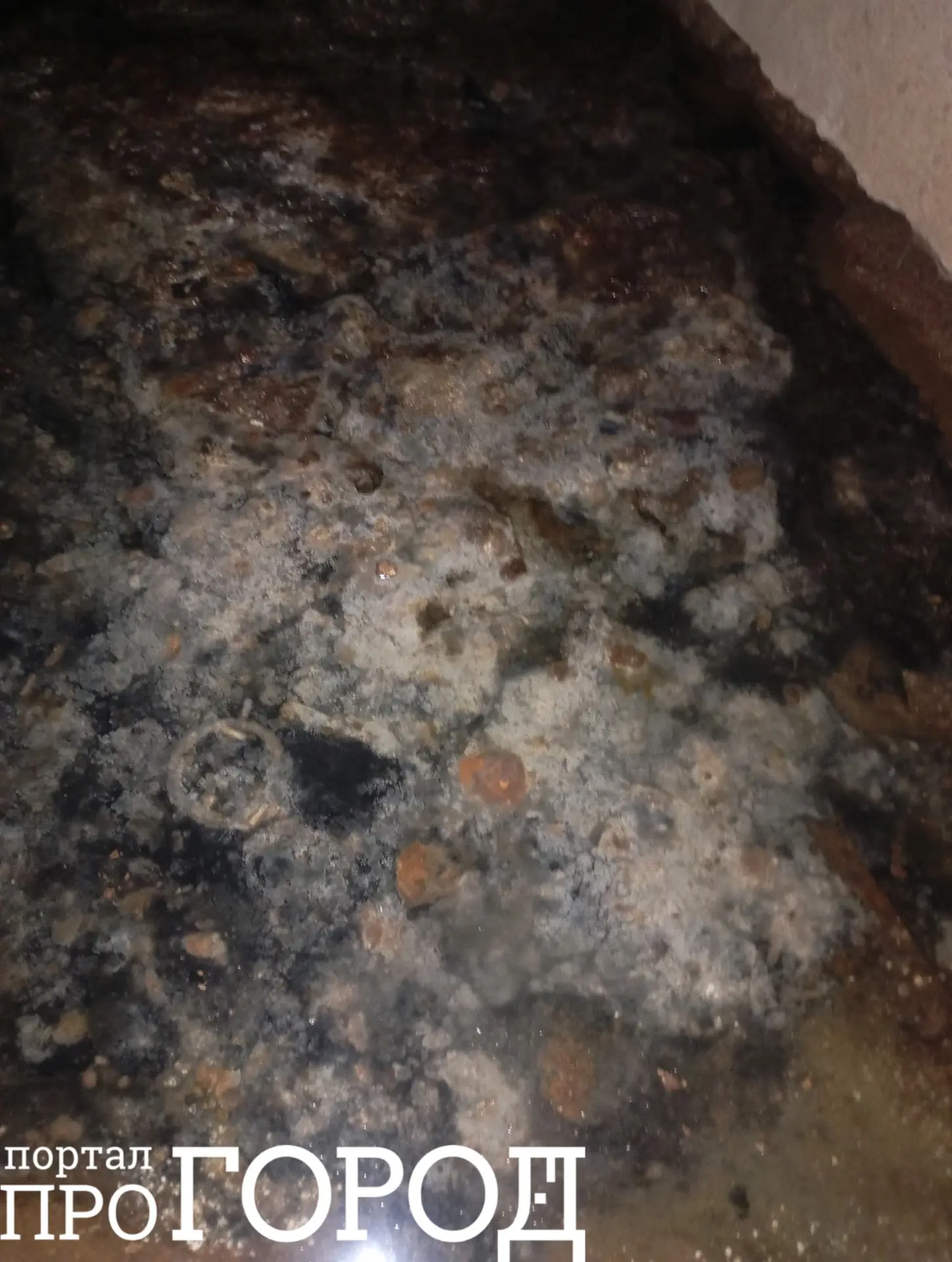 «От двери до лестницы воды по щиколотку. И так каждый год! При входе в подъезд доска пола поломана, а внизу подвал залит полностью водой. В доме живут маленькие дети!