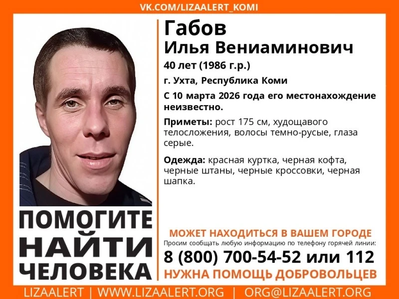 С 10 марта 2026 года местонахождение Ильи Габова неизвестно, сообщают добровольцы отряда "ЛизаАлерт".