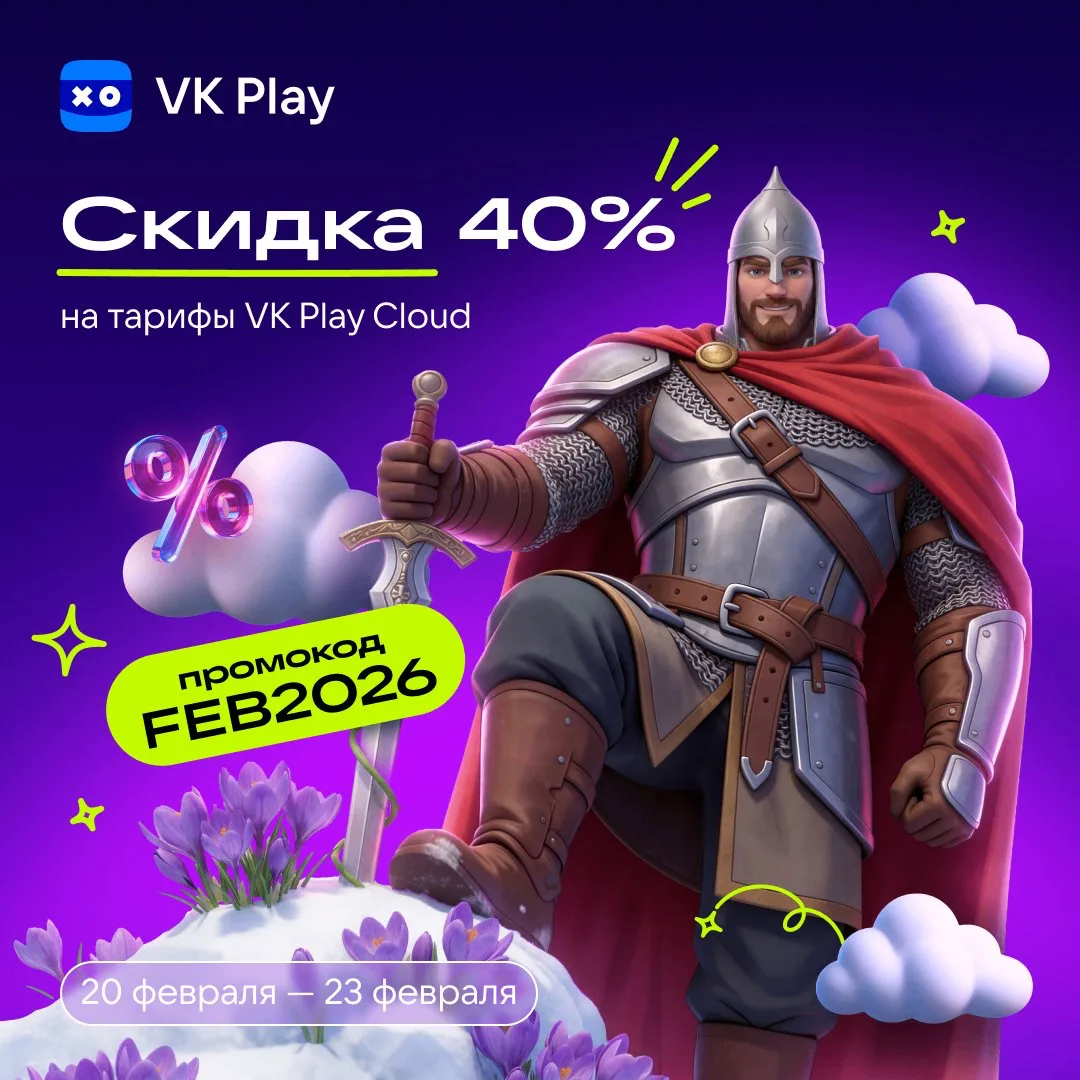 Стартовала распродажа тарифов VK Play Cloud! По промокоду FEB2026 любой тариф кроме «Лайт» со скидкой 40% — https://trk.mail.ru/c/seyifoy8