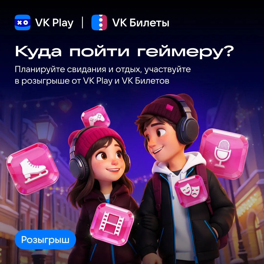Не знаете куда сходить? VK Play совместно с VK Билеты подготовили подборку интересных мест. Но это еще не все! Мы проводим конкурс! С нашей стороны мы дарим победителям доступ к сервису облачного гейминга, а VK Билеты подарят пять сертификатов в кино на 1 500 ₽. Подробности в нашей группе VK.