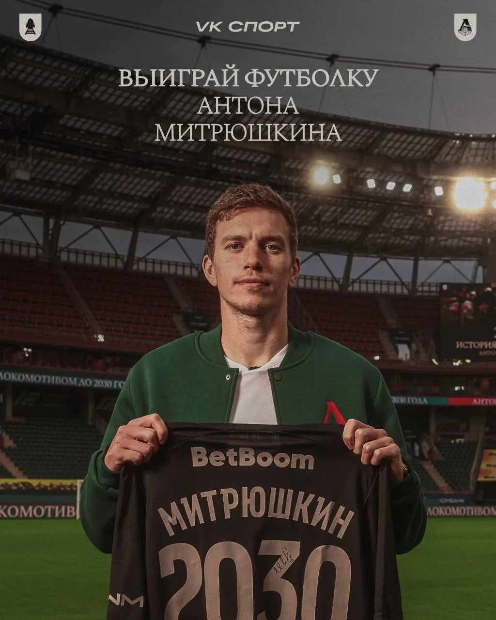 Антон Митрюшкин продлил контракт с клубом до 2030 года, а мы разыгрываем уникальную футболку капитана «Локомотива» с автографом — прямо с подписания нового соглашения!