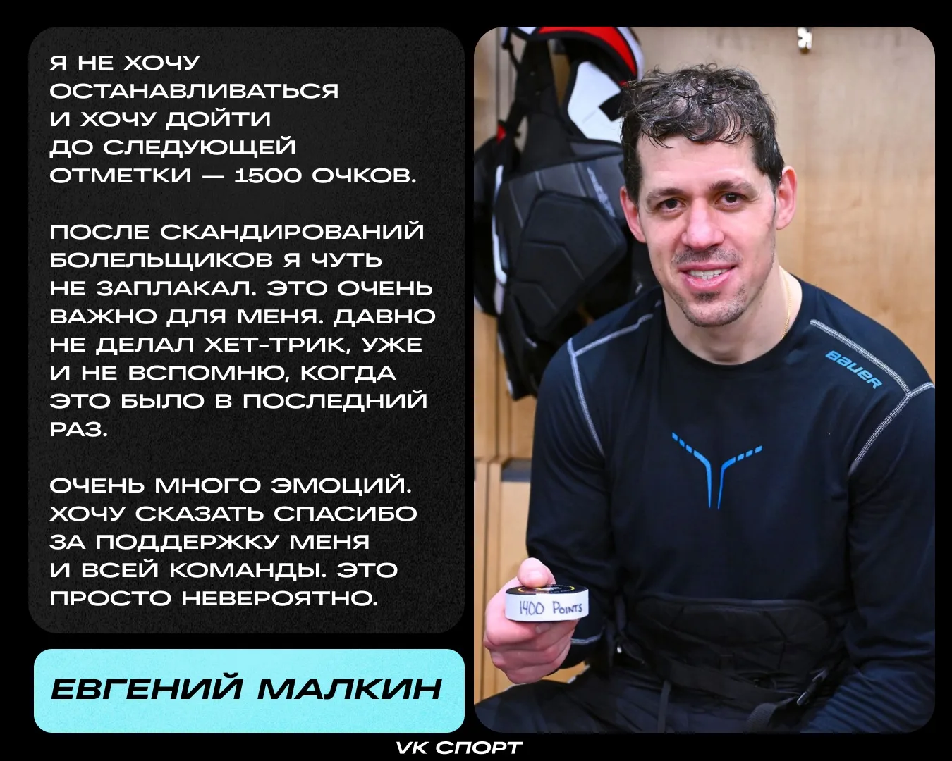 🔥 Малкин — оформил хет-трик и стал вторым россиянином, набравшим 1400 очков в НХЛ