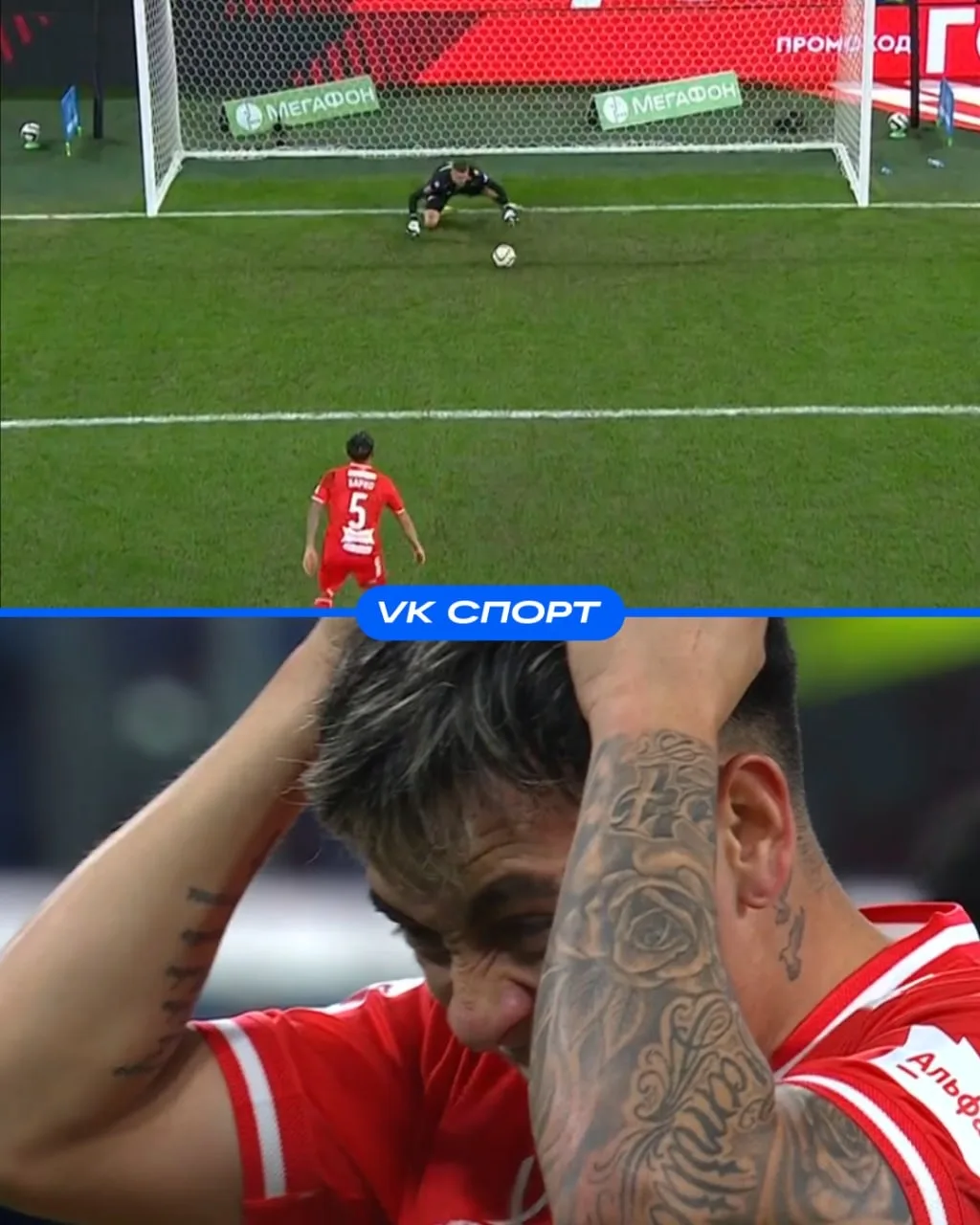 Барко с точки катнул мяч в руки Латышонку. Ударом это трудно назвать 😄