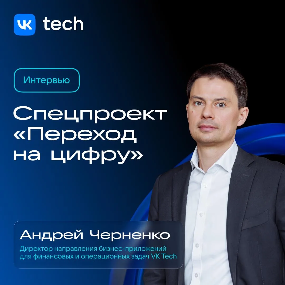 В спецпроекте VK Tech и ТАСС «Переход на цифру» вышло новое интервью. Его героем стал Андрей Черненко, директор направления бизнес-приложений для финансовых и операционных задач VK Tech.