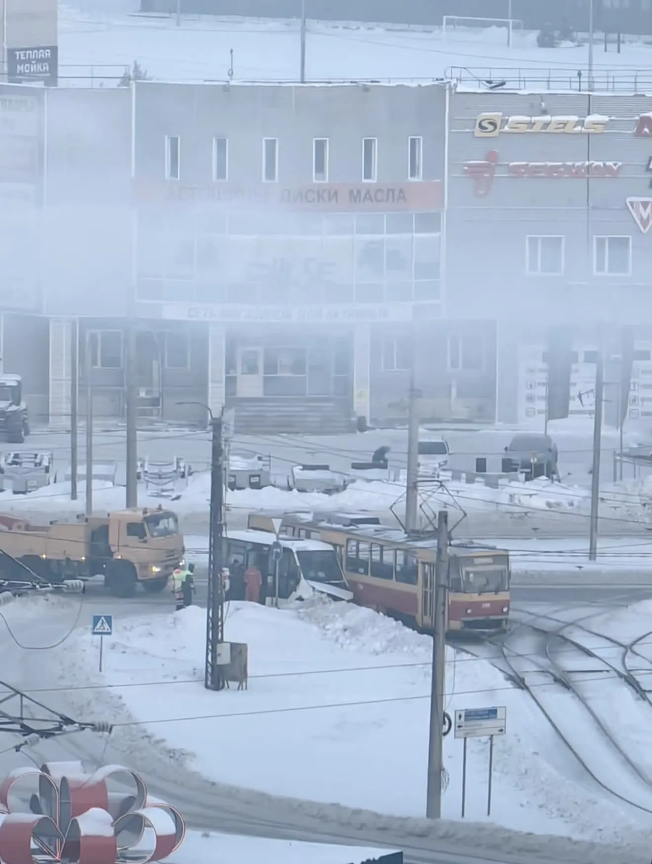 🙄 В лютый мороз столкнулись маршрутка с трамваем на пересечении Попова / Власихинская.