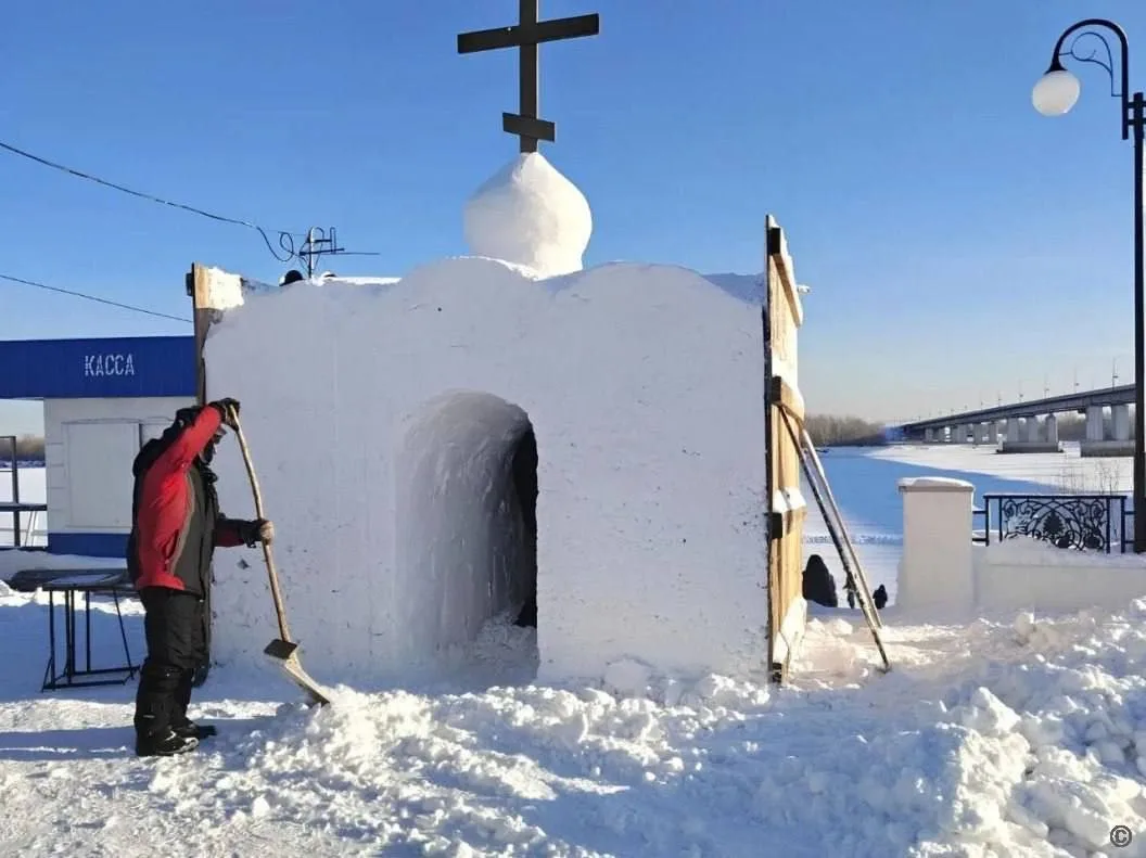 🧊Крещенский городок с купелью строят на набережной Оби в Барнауле