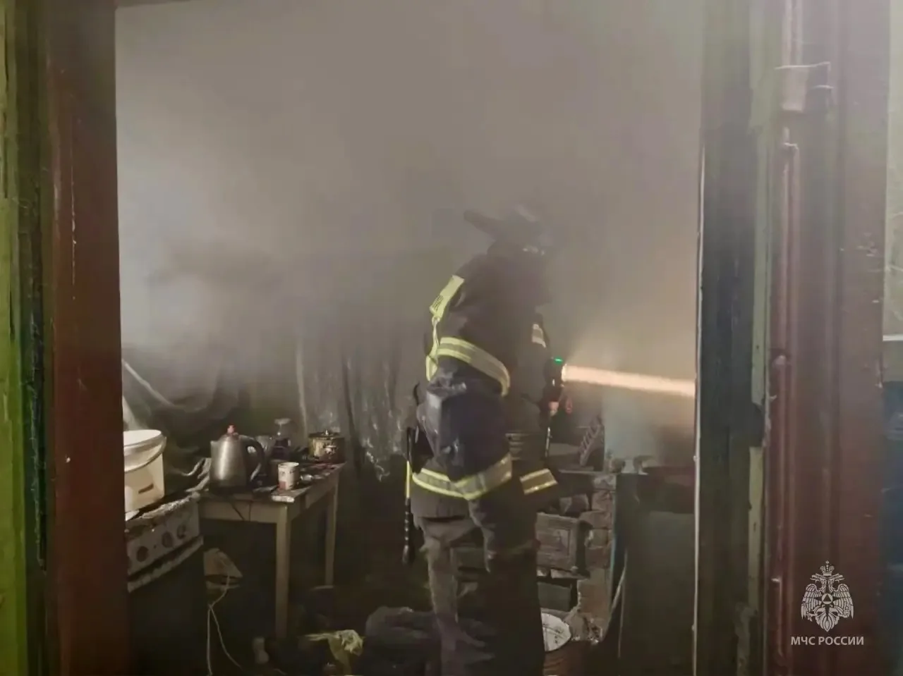 В условиях сильного задымления работало звено газодымозащитной службы. К сожалению, на месте происшествия был обнаружен погибший мужчина. Об этом сообщили в МЧС.