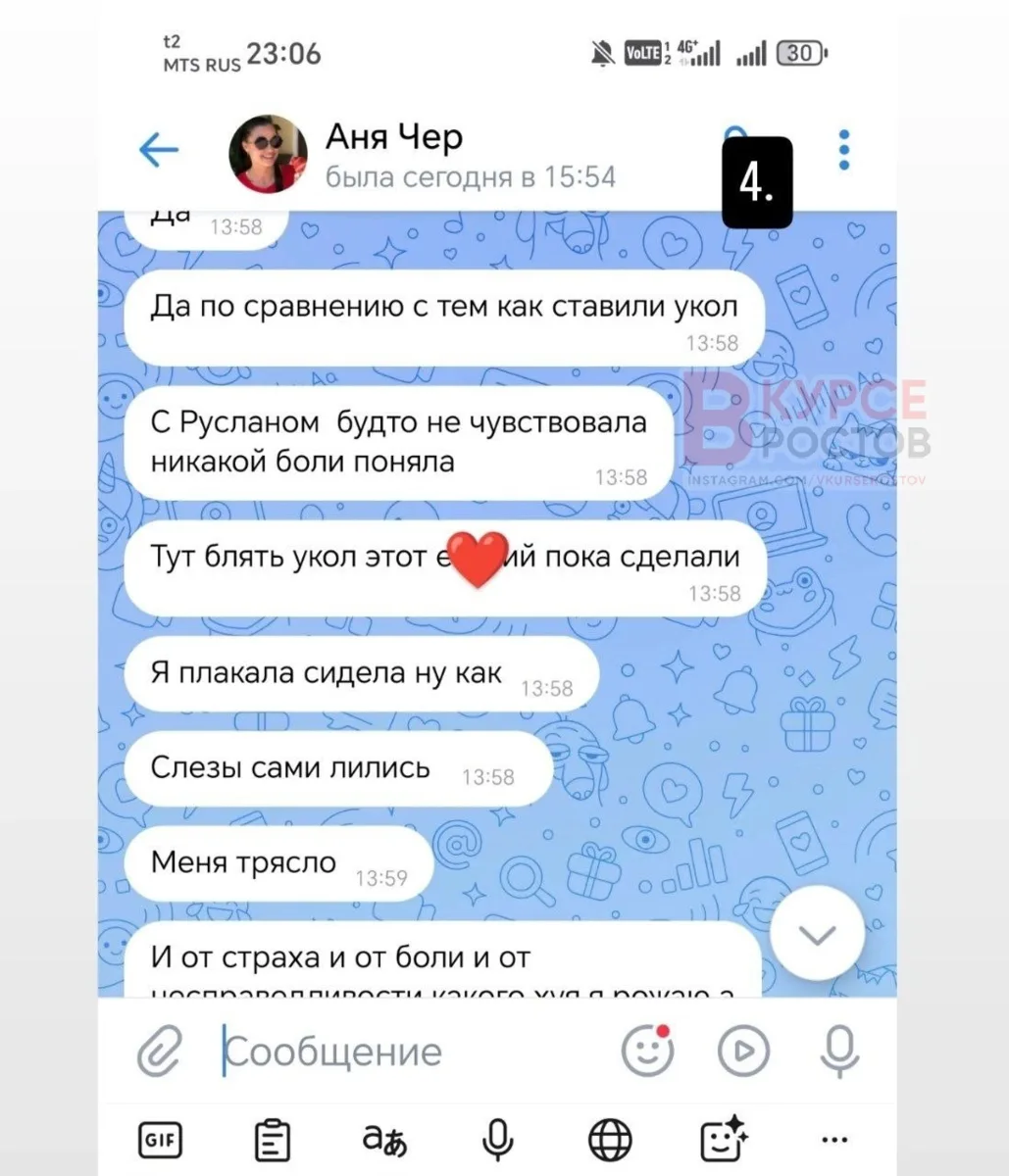 - «Не могу расслабиться, сказали, что ввели максималку, но больно все равно… настолько дико больно, я рыдаю, у них ничем не получается мне помочь…меня всю трясет, когда это закончится?»,- писала своей подруге Анна.