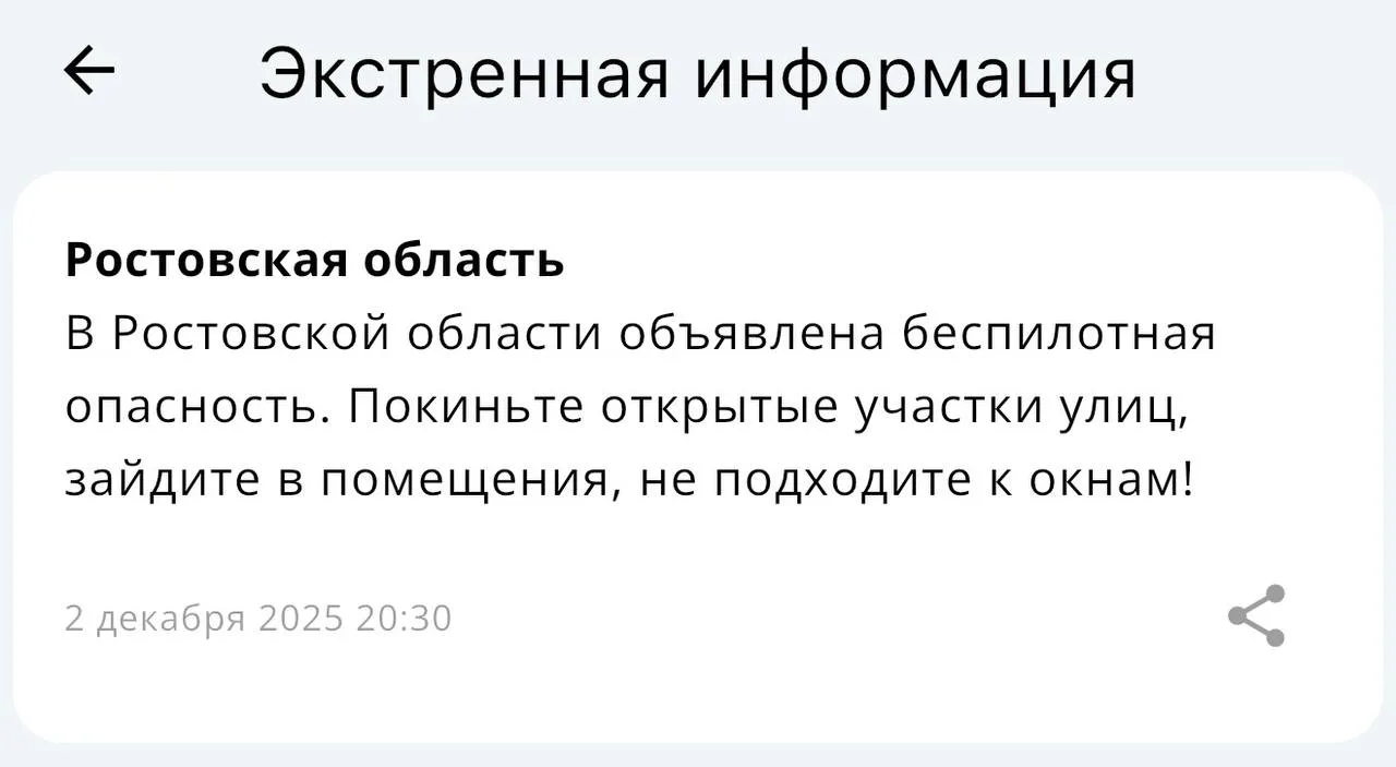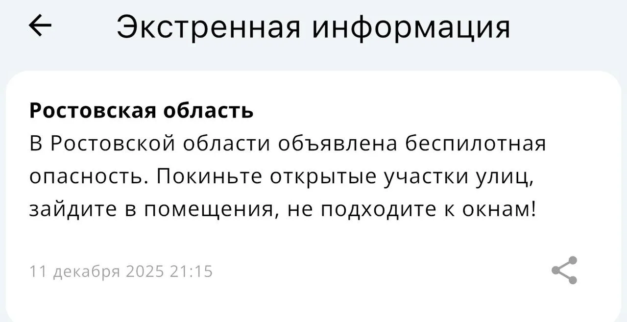 ❗️ Беспилотную опасность объявили на территории Ростовской области