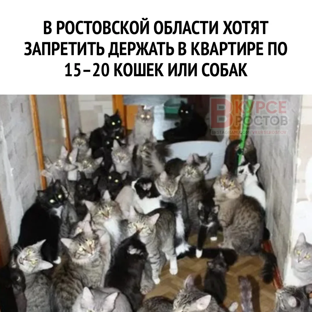 🐈В Ростовской области хотят запретить держать в квартире по 15–20 кошек или собак.
