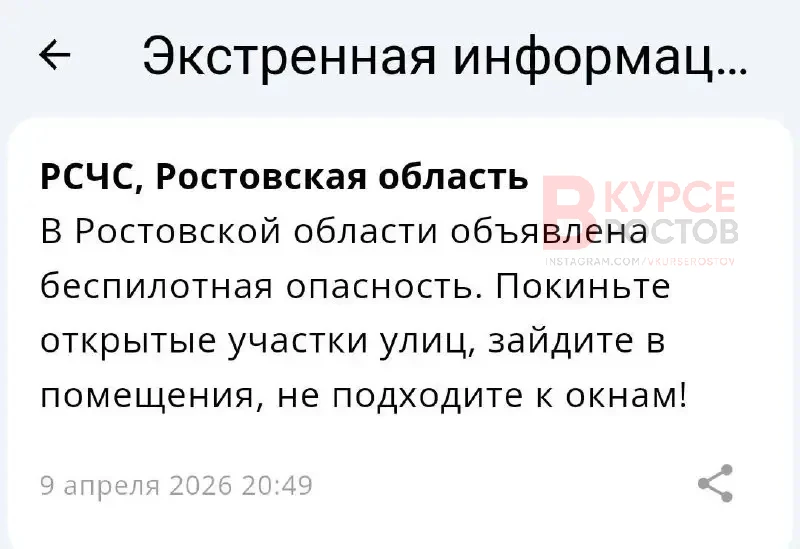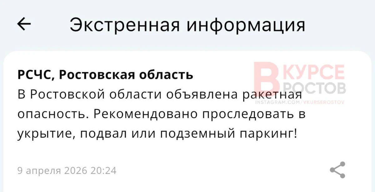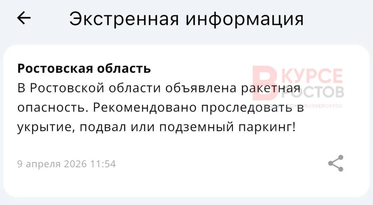 ‼️ Ракетная опасность объявлена по всей Ростовской области.