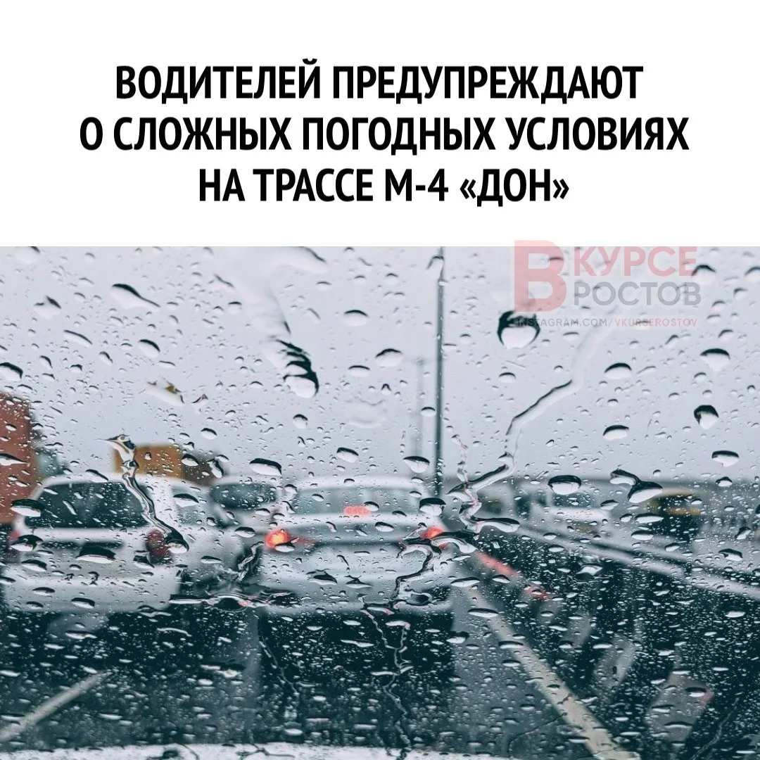 ⚡️Водителей предупреждают о сложных погодных условиях на трассе М-4 «Дон»