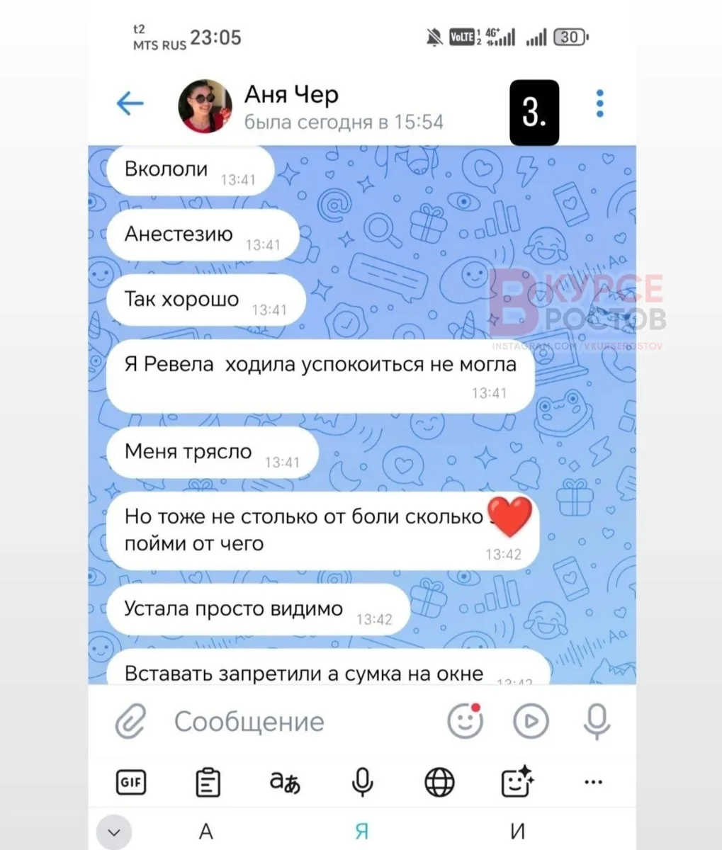 Пока Аня находилась в сознании, пыталась держать связь с подругами и мужем. Там она неоднократно жаловалась на свое состояние.
