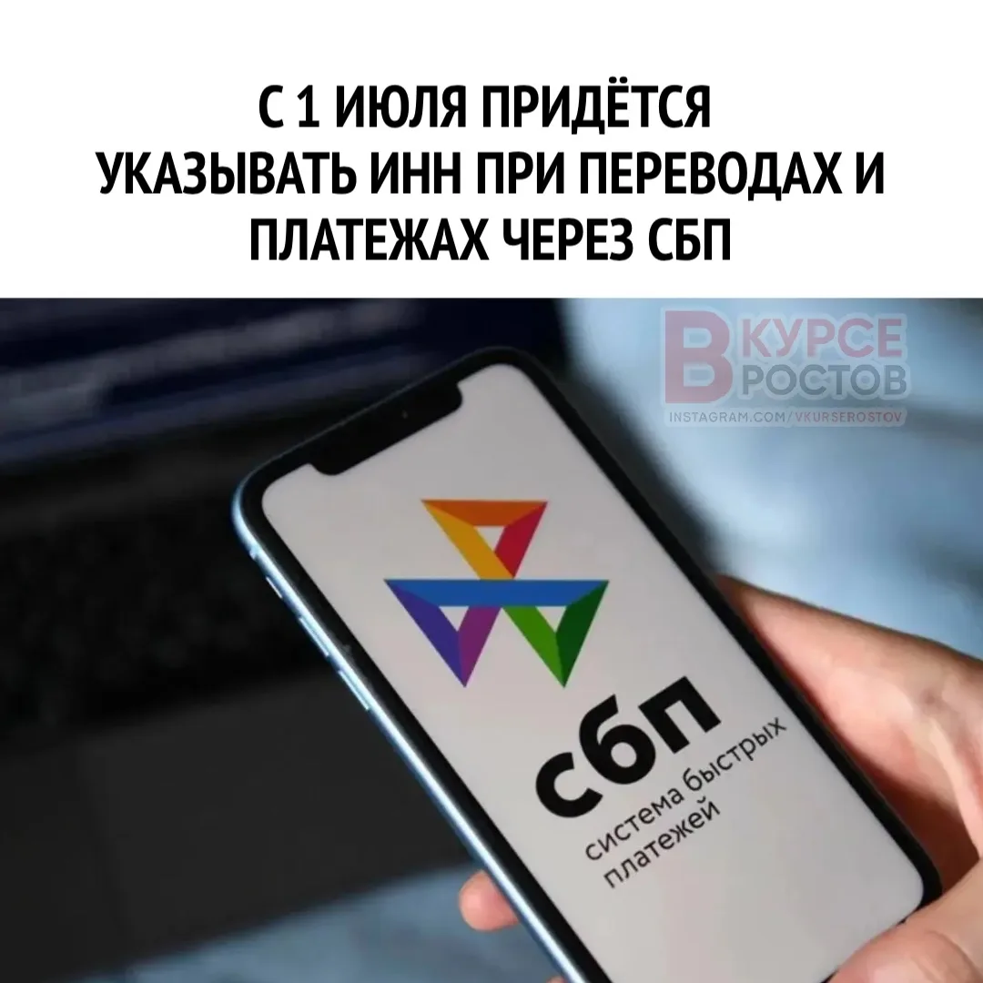 💳 С 1 июля придётся указывать ИНН при переводах и платежах через СБП.