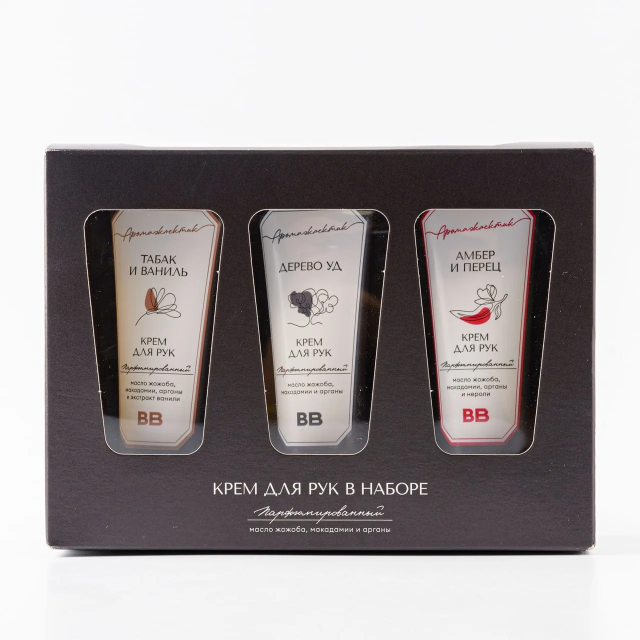 🧴 Набор парфюмированных кремов для рук превратит ежедневный ритуал ухода за кожей рук в настоящую ароматерапию. Внутри — манящий цветочно-пряный аромат «Амбер и перец», изысканное «Дерево уд» и сладковато-терпкий «Табак и ваниль».